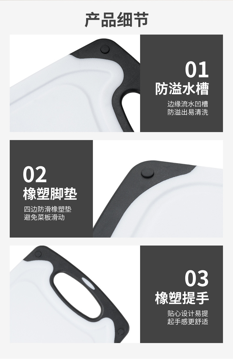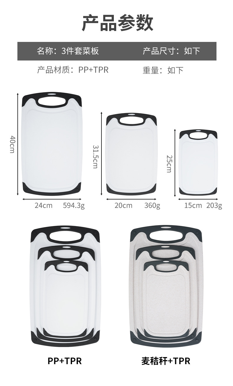 주방 도구 다기능 플라스틱 도마 3 피스 세트 미끄럼 방지 두꺼운 사각형 분류 도마