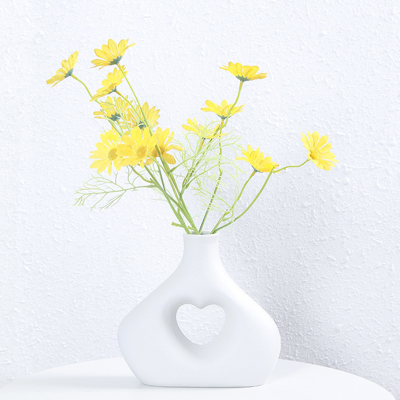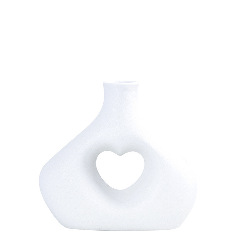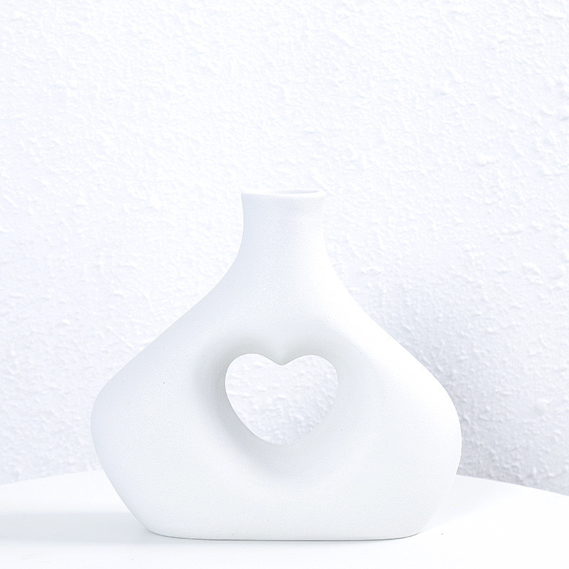 국경 간 세라믹 꽃병 장식 북유럽 꽃 장식품 복도 거실 홈 말린 꽃 하트 모양의 기하학적 꽃 장식품
