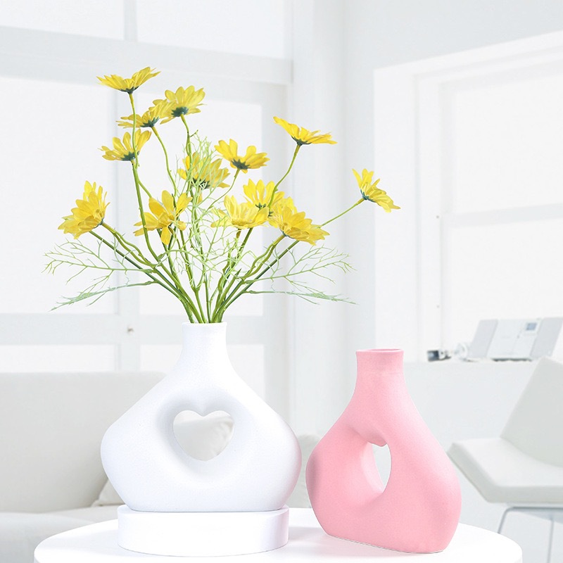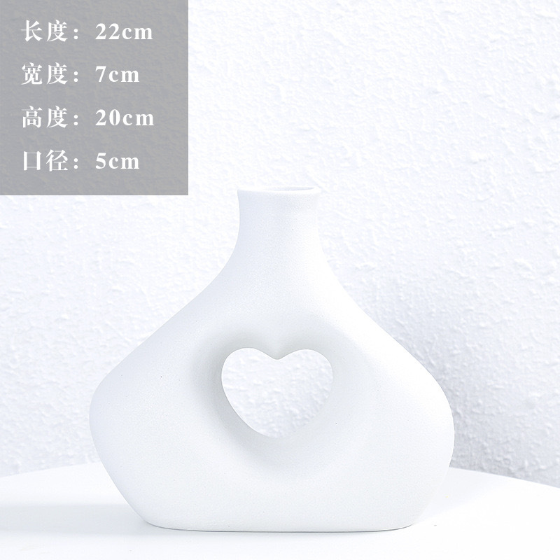 국경 간 세라믹 꽃병 장식 북유럽 꽃 장식품 복도 거실 홈 말린 꽃 하트 모양의 기하학적 꽃 장식품스토어 가기