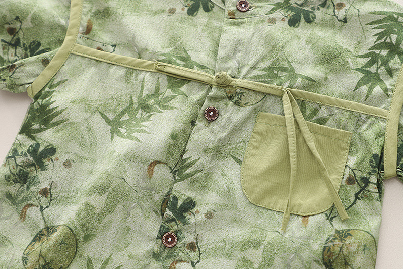 2024 년 여름 새로운 소년 소녀 국가 스타일 반팔 아동복 민족 스타일 투피스 어린이 세트 유아 여름복스토어 가기