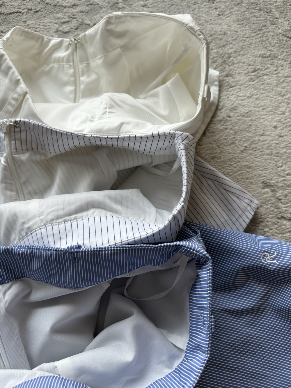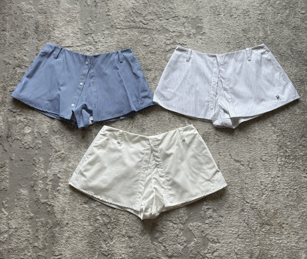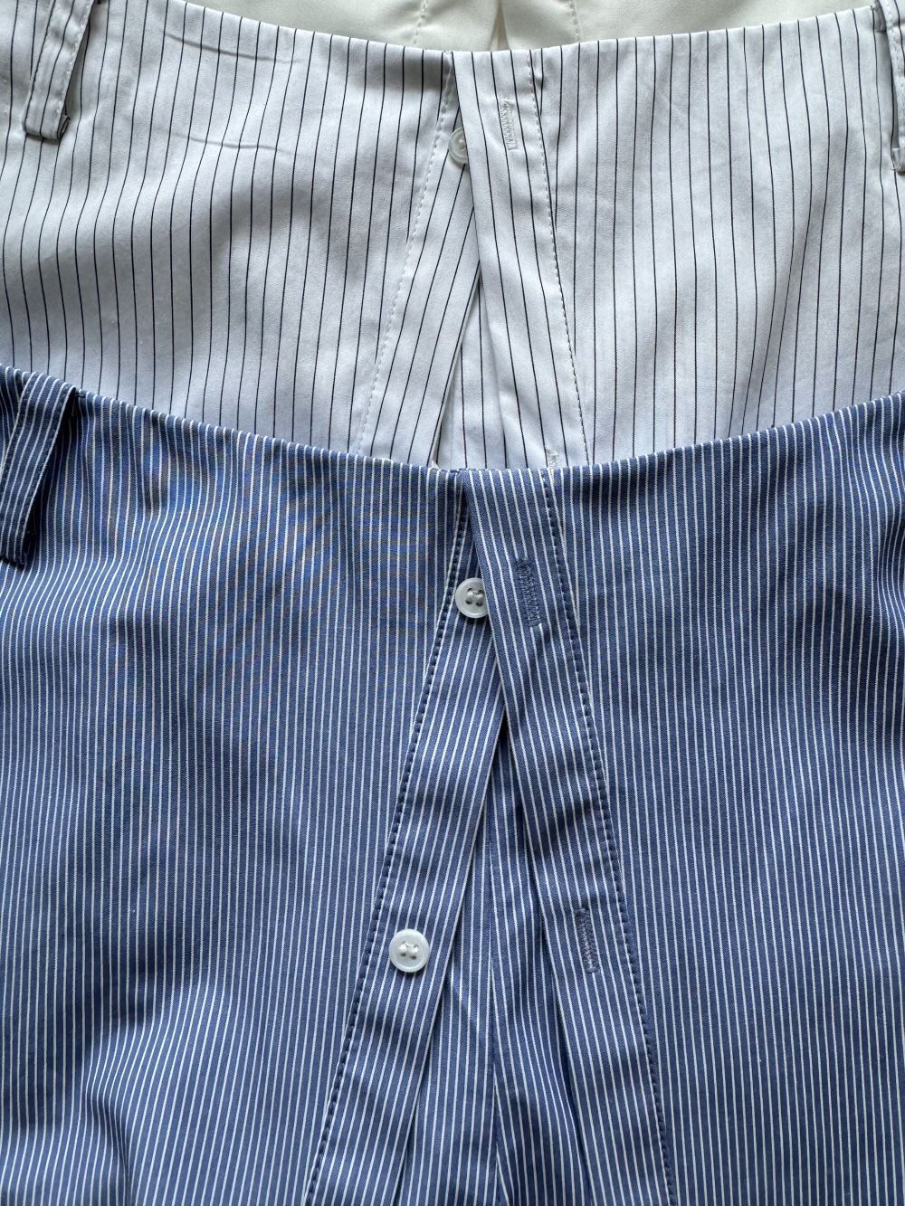 가짜 투피스 셔츠 미니 스커트 화이트/화이트 스트라이프/블루 스트라이프