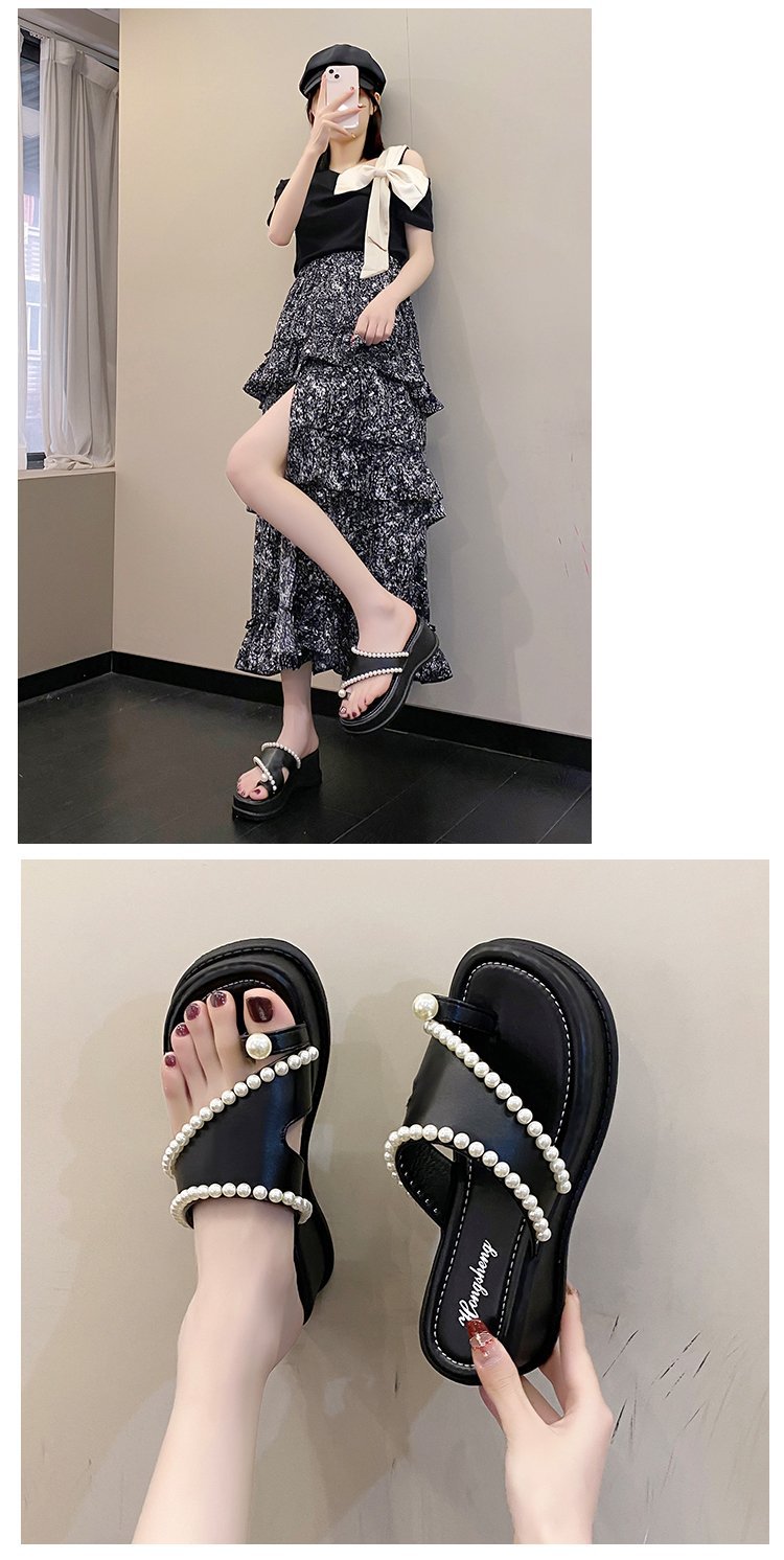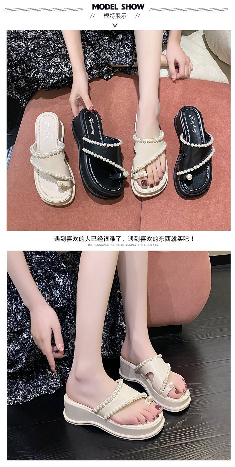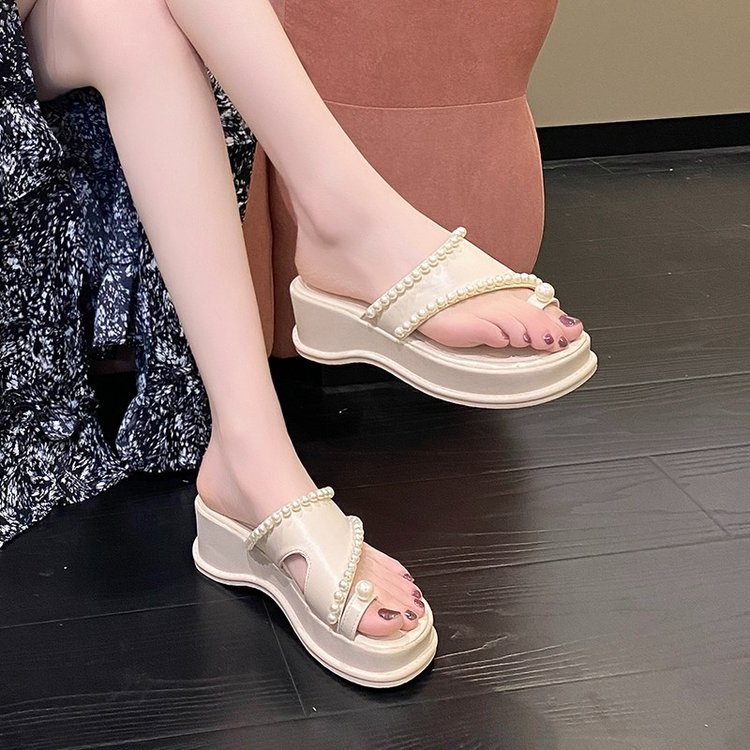 진주 발가락 샌들 여성의 2024 여름 새로운 요정 스타일 두꺼운 밑바닥 유행 플립 플롭스토어 가기
