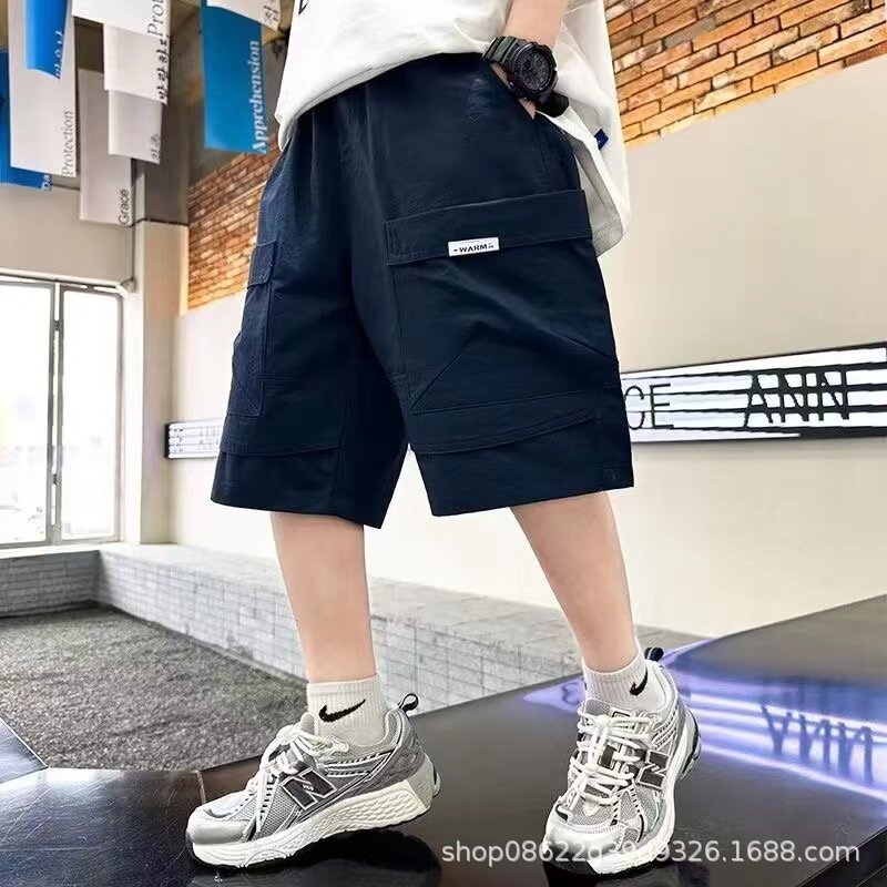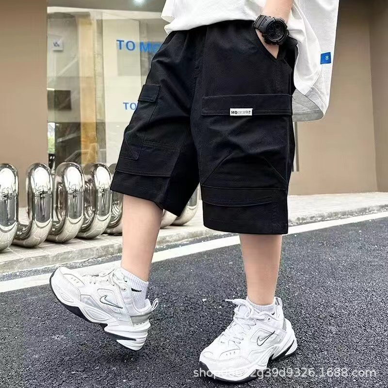 2024 새로운 소년 작업 반바지 여름 얇은 느슨한 캐주얼 5 점 바지 큰 어린이 올 매치 스포츠 바지