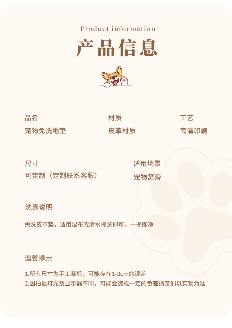 애완 동물 바닥 매트 방수 소변 방지 PVC 매트 개집 마모 방지 지울 바닥 매트 고양이 특수 애완 동물 카펫