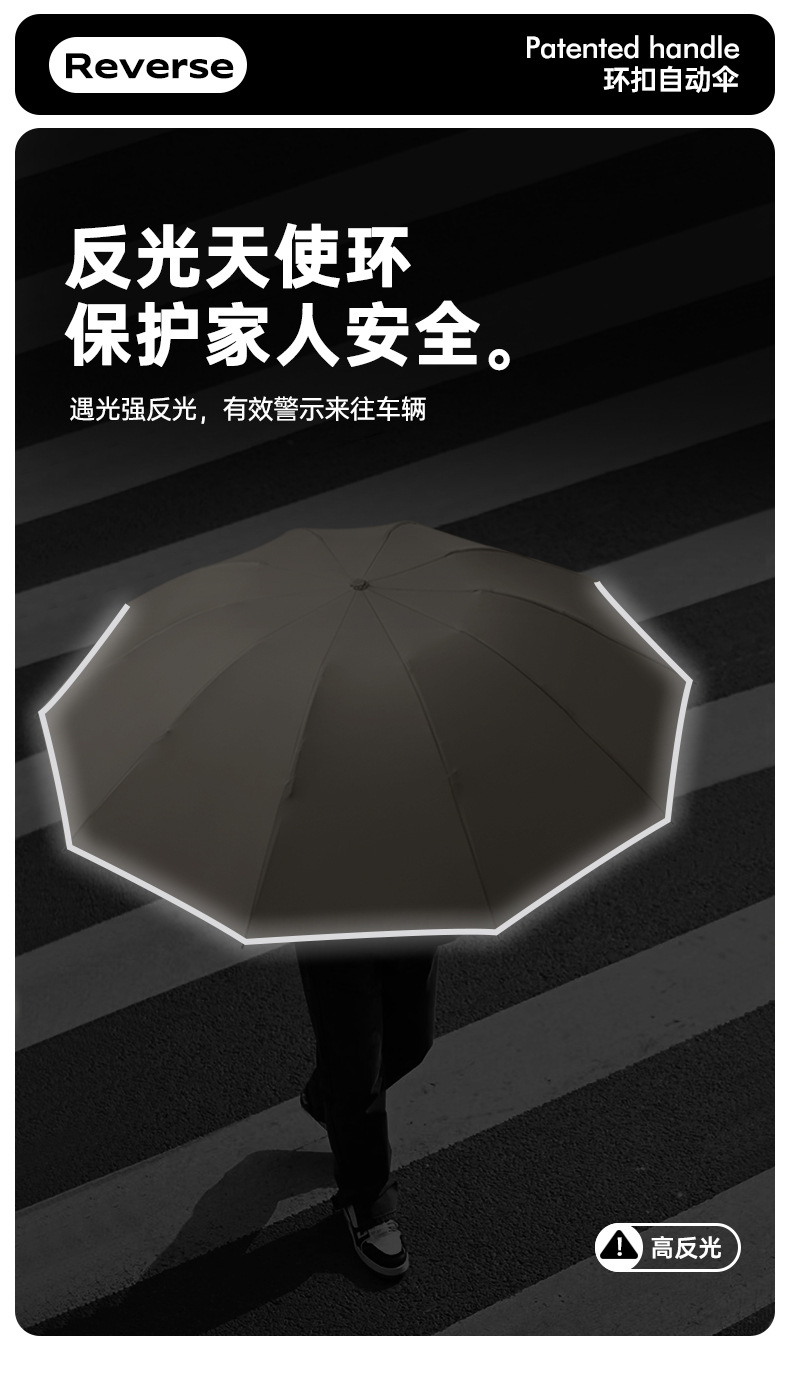• 10 뼈 자동 역방향 알루미늄 합금 해골 링 버클 우산 280t 충격 천 직물 --- Wutong 쌀