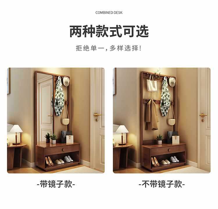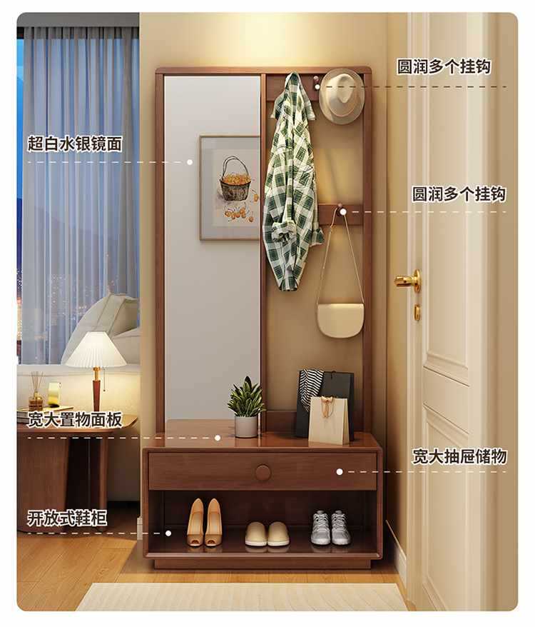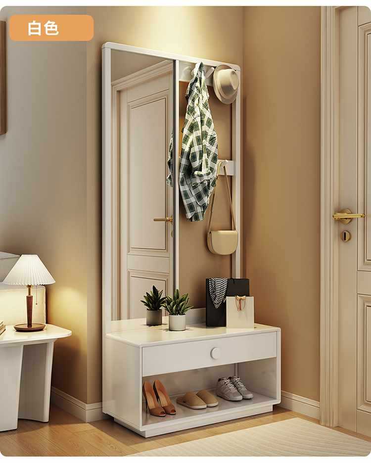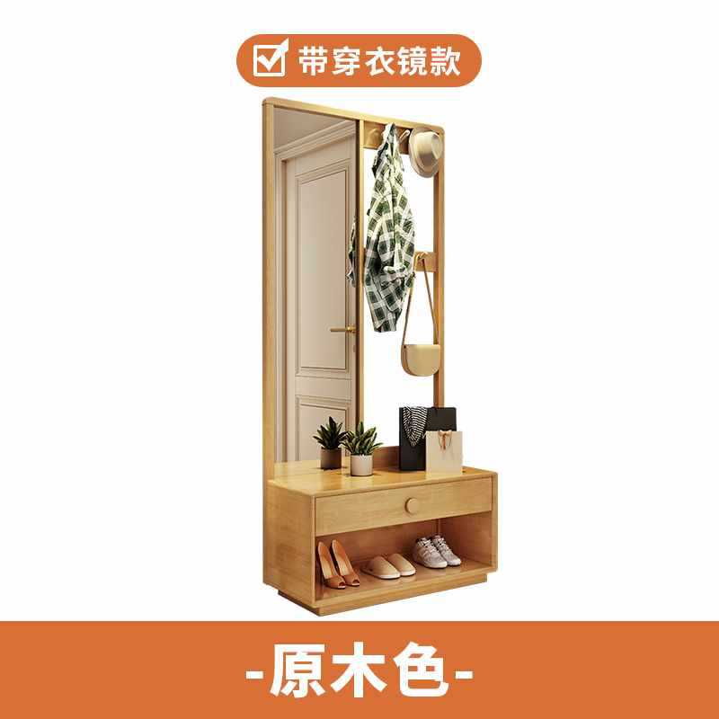 바닥 거울 단단한 나무 거울 전신 전체 길이 거울 걸이 통합 도어 투 도어 신발 변경 의자 도어 현관 코트 랙