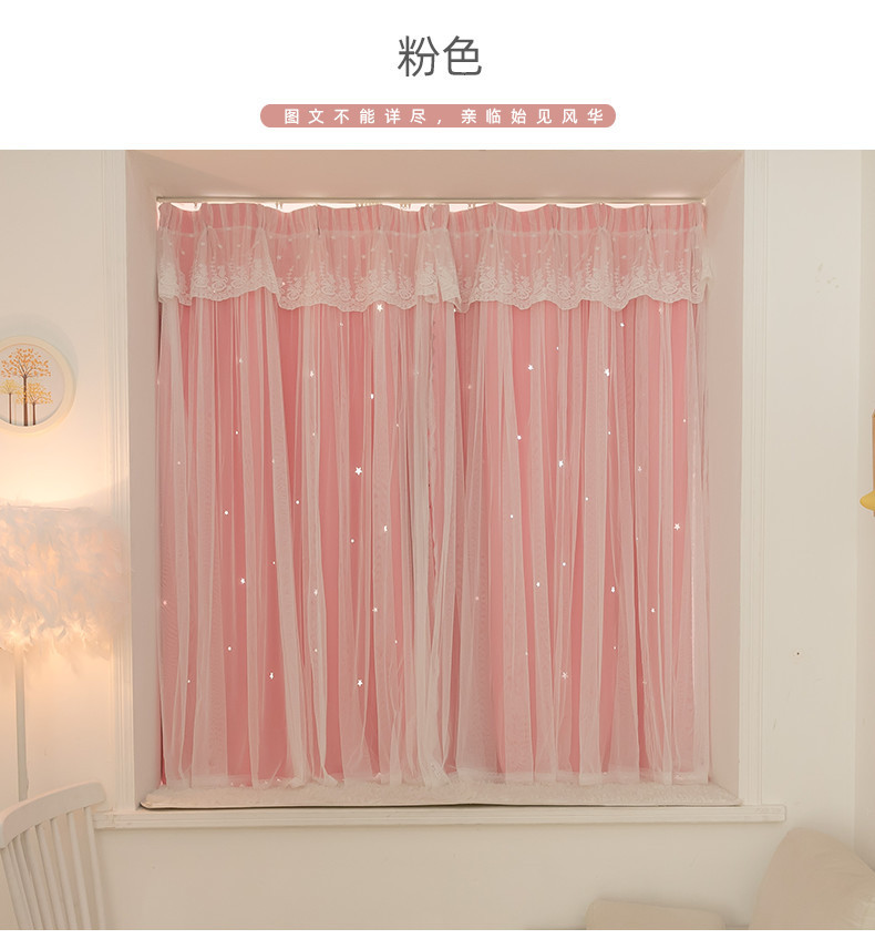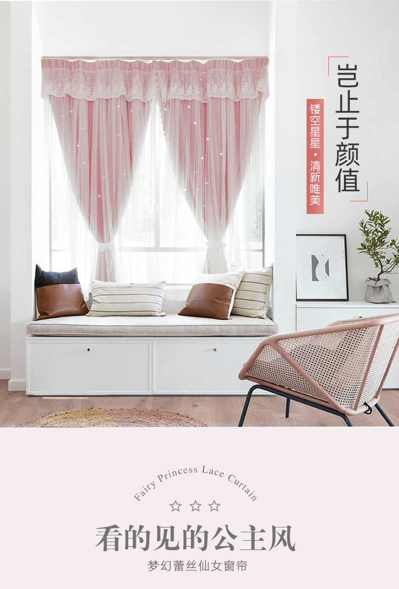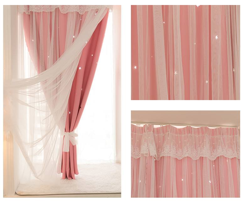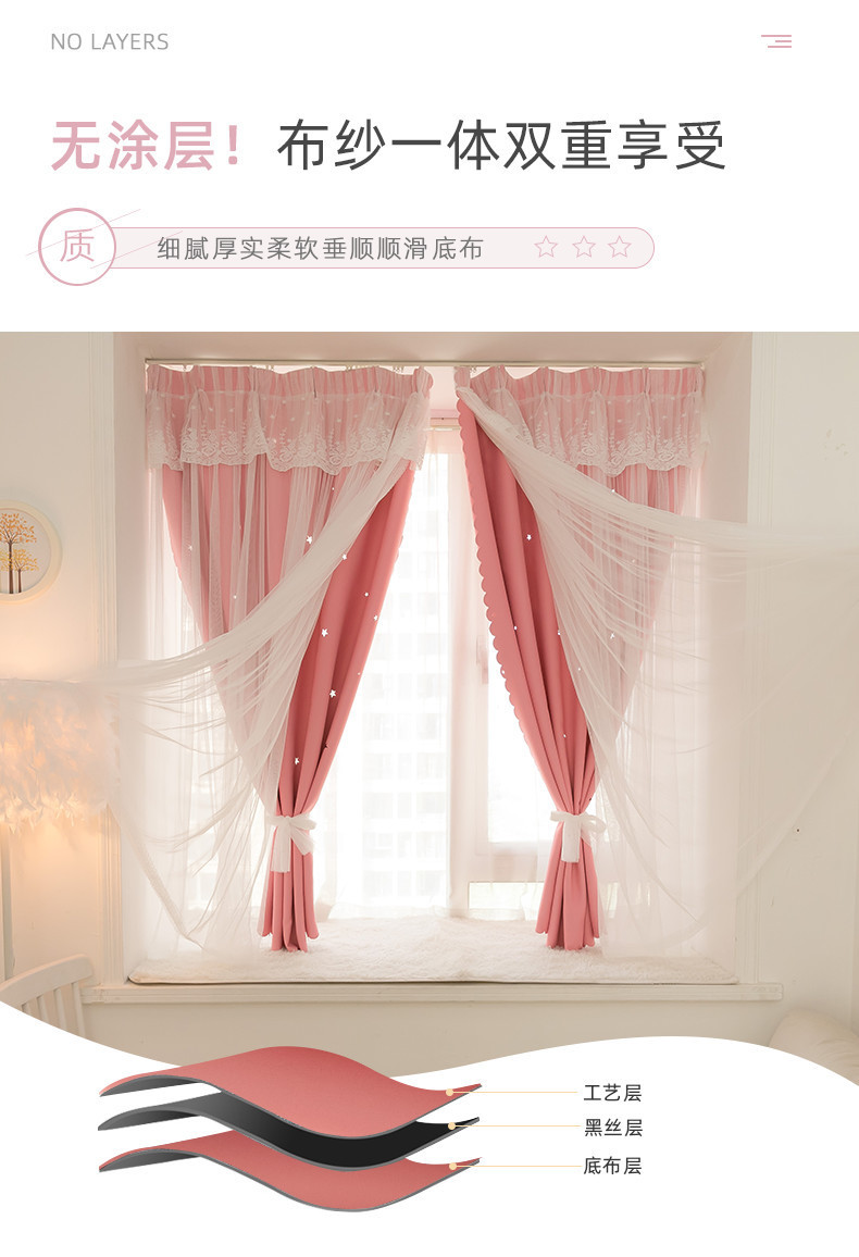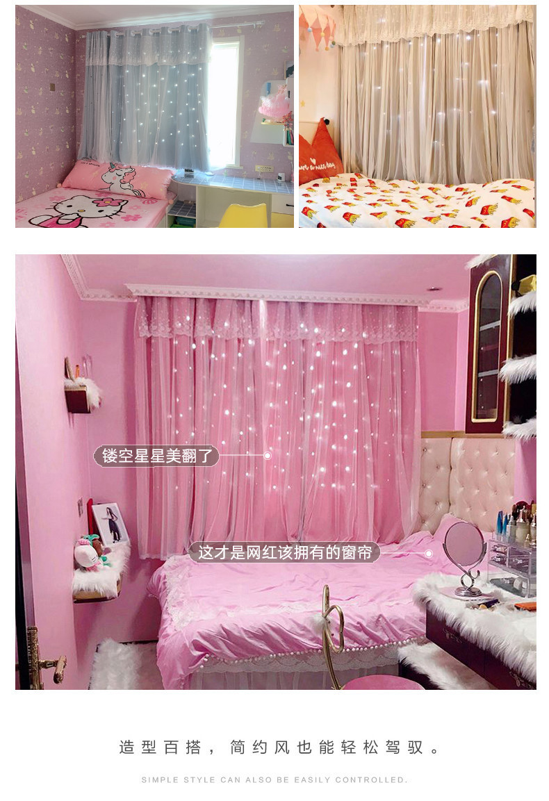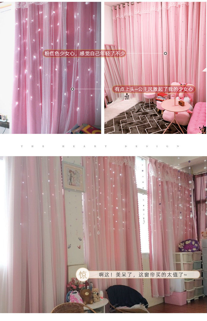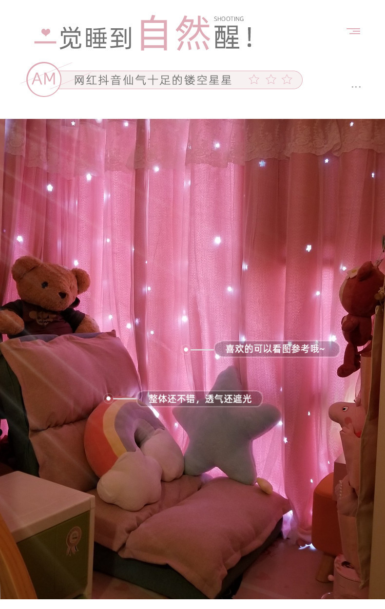 특별 가격 그물 빨간 완성 된 커튼 공주 바람 음영 침실 중공 별 부동 커튼 무료 설치 도매스토어 가기