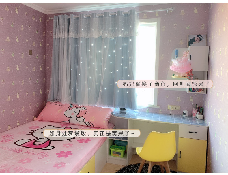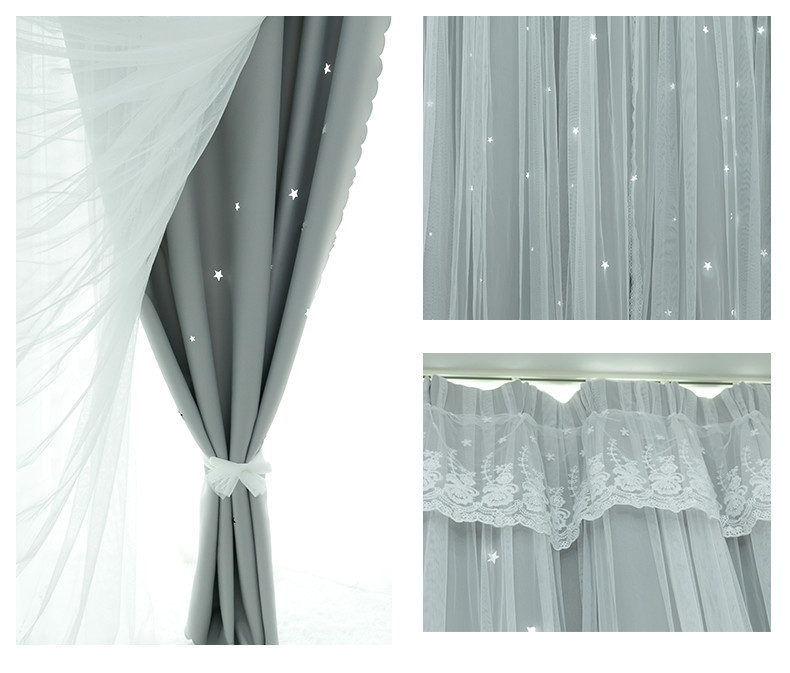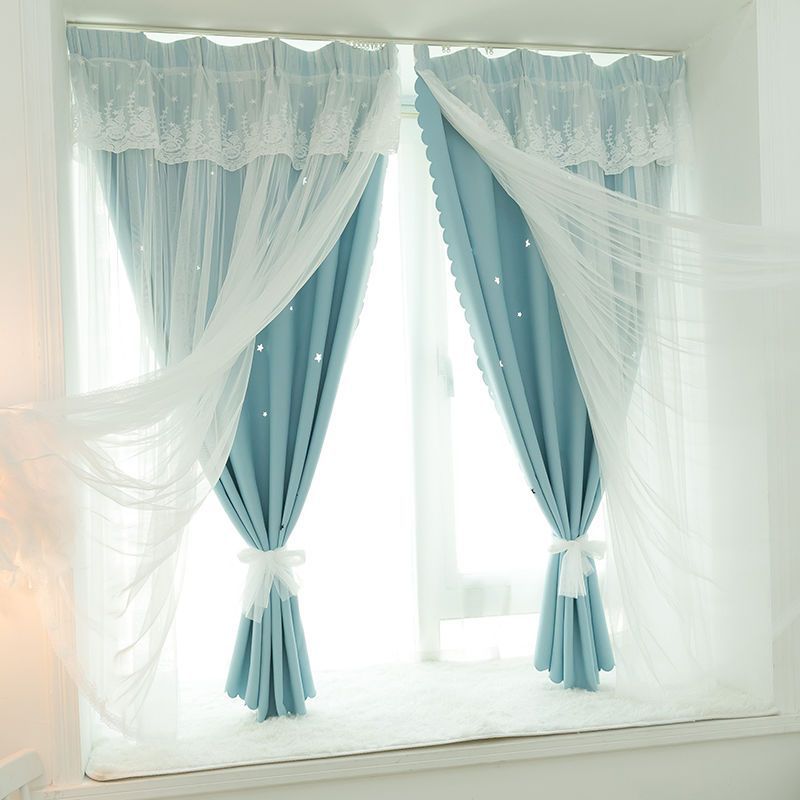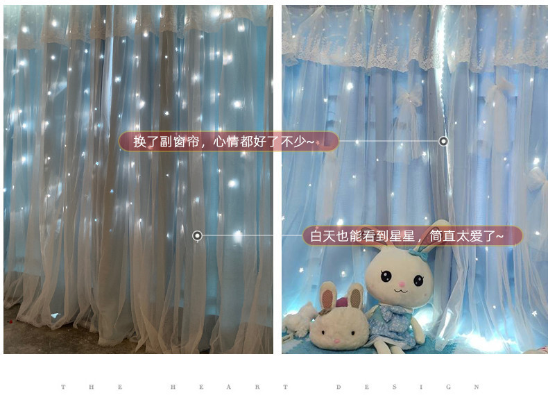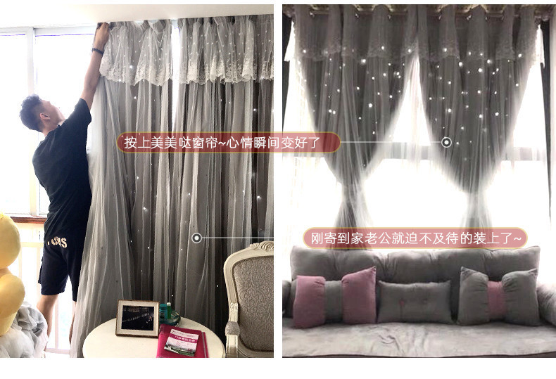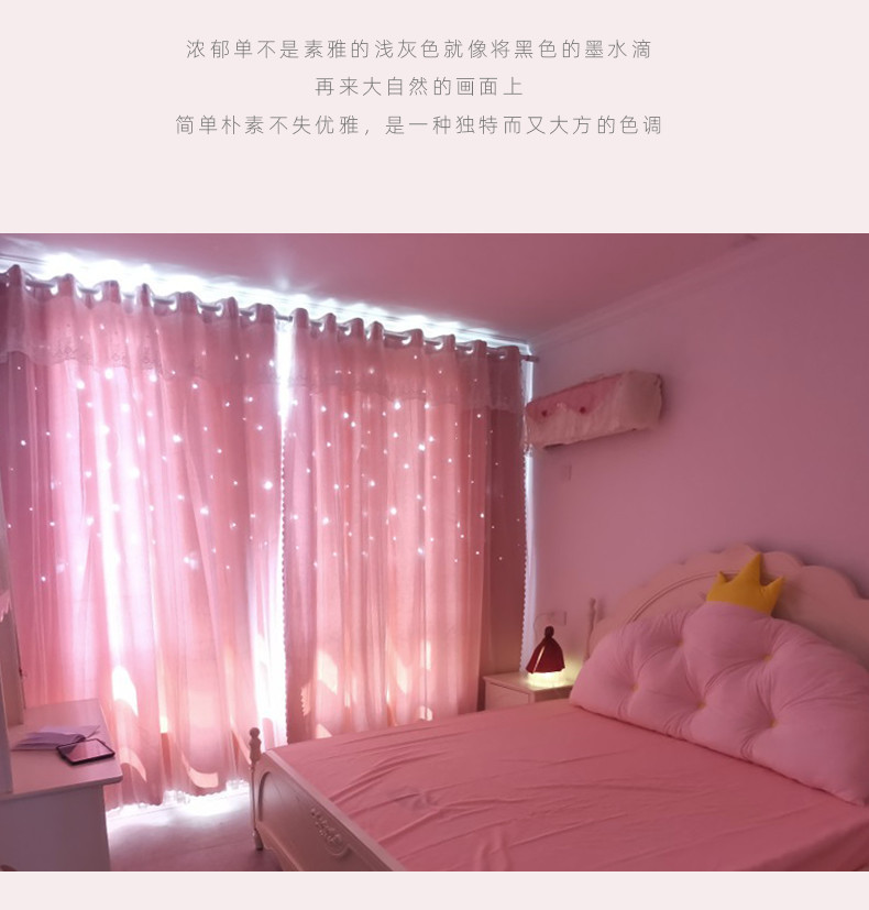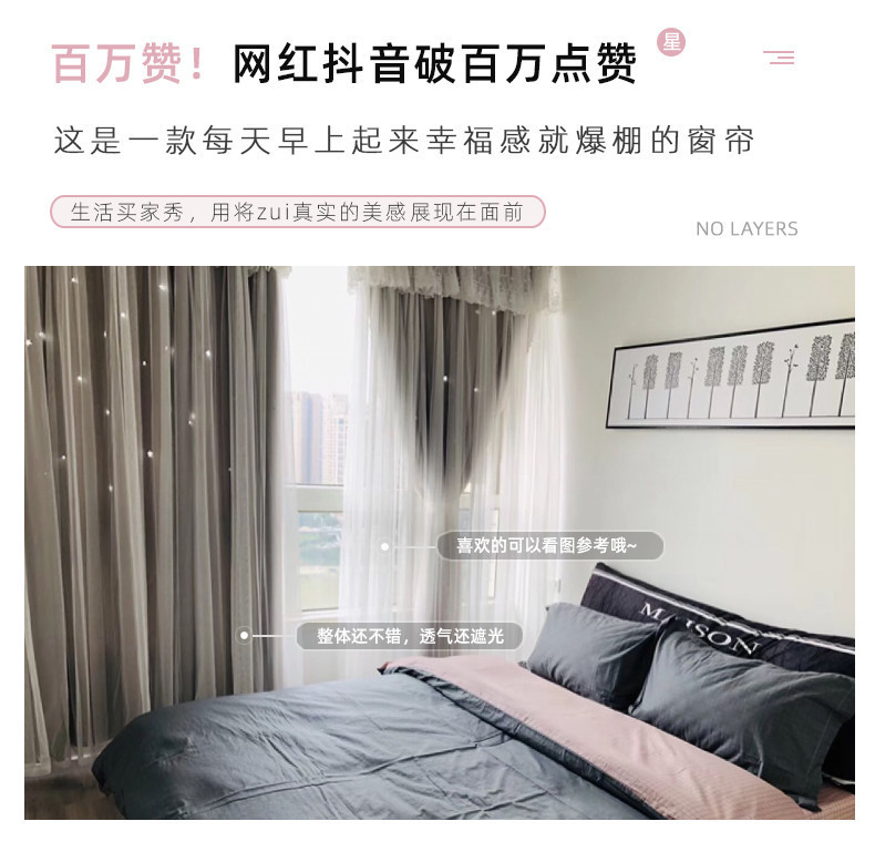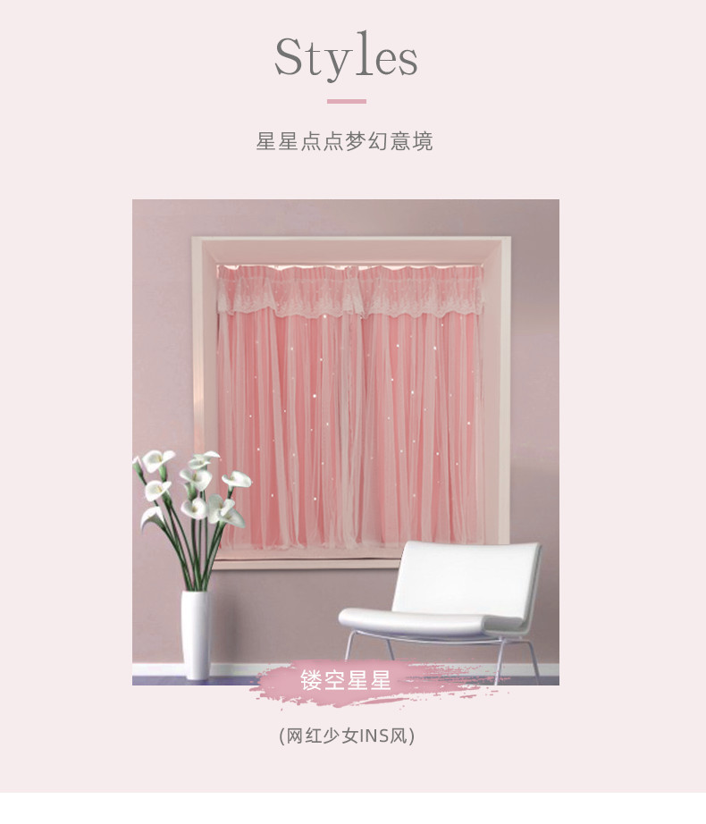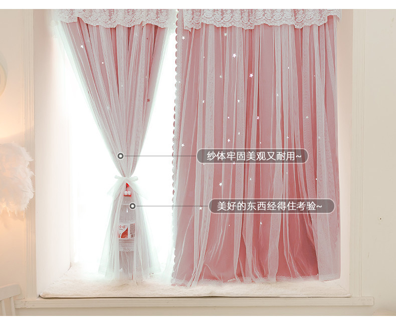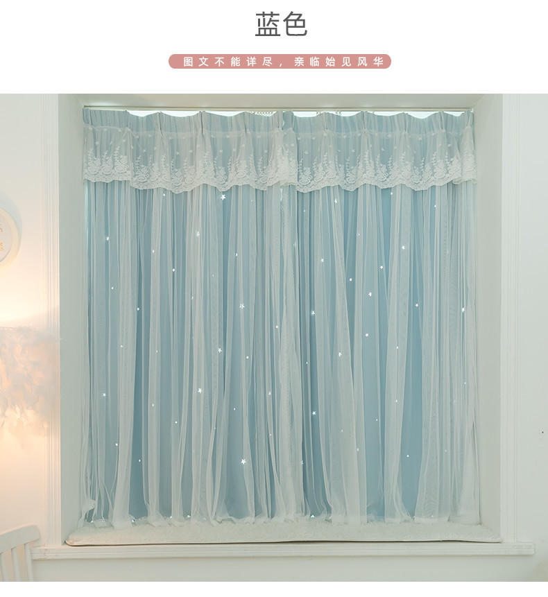 특별 가격 그물 빨간 완성 된 커튼 공주 바람 음영 침실 중공 별 부동 커튼 무료 설치 도매스토어 가기