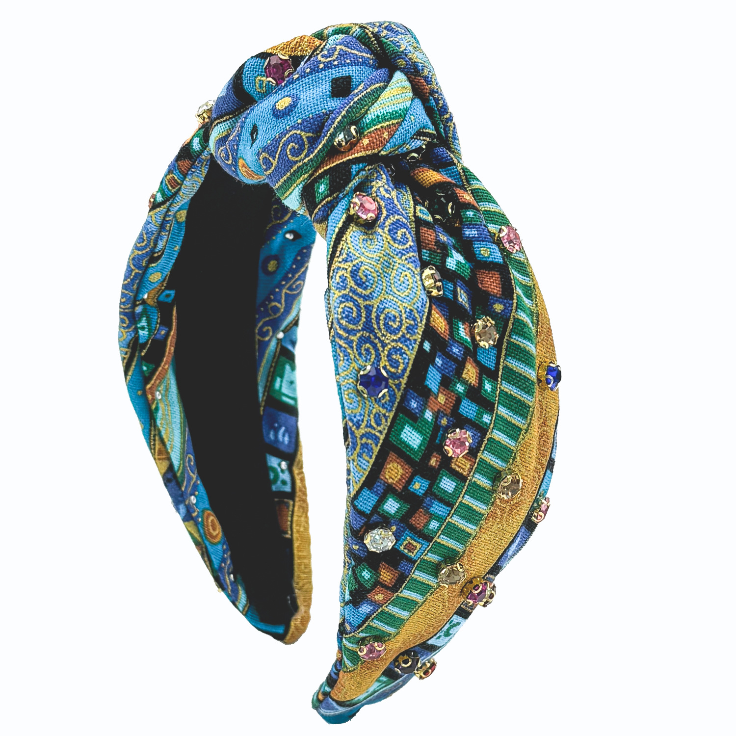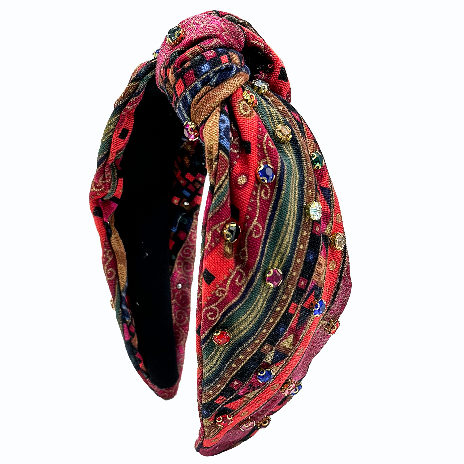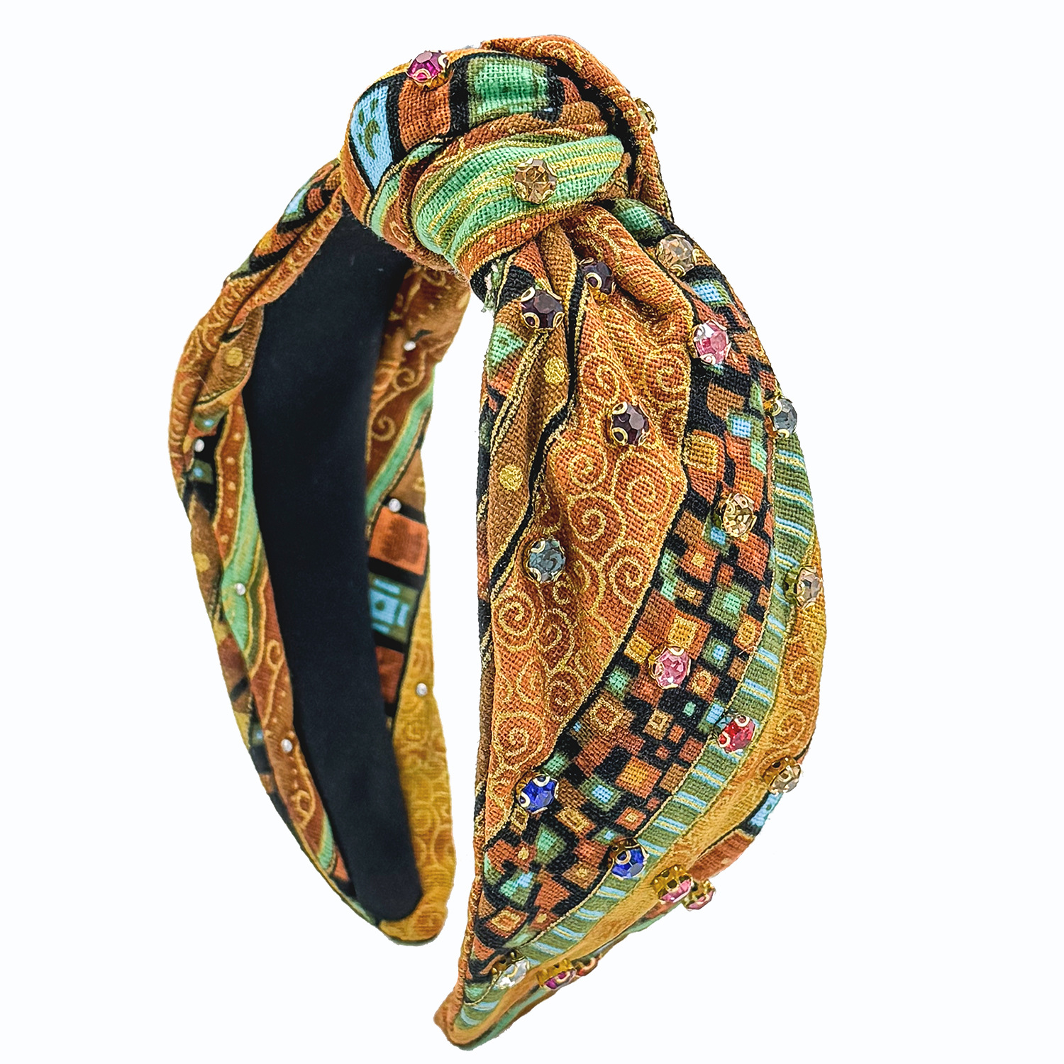 【名称】2024跨境专供宽边印花水钻发箍民族风布艺打结巴洛克发箍批发发饰女