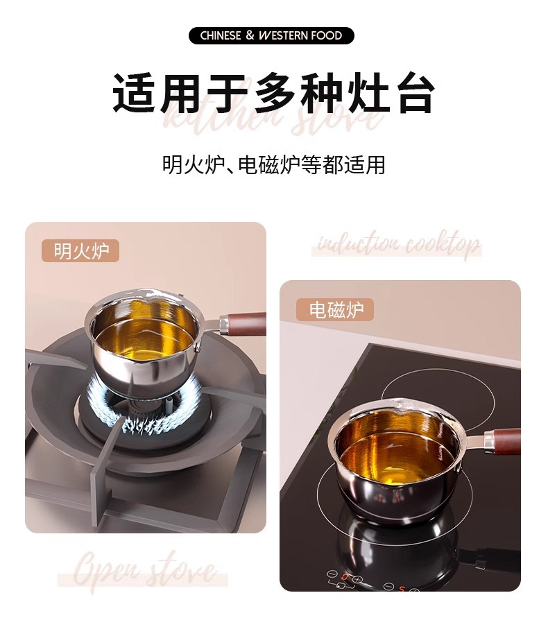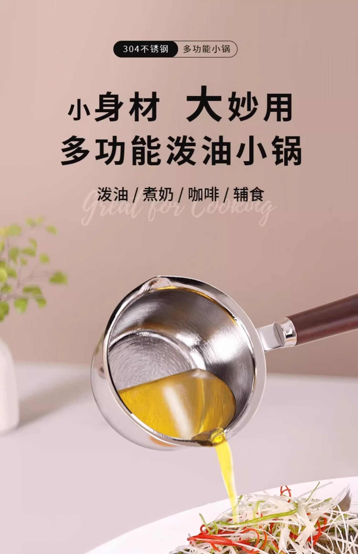 다기능 뜨거운 기름 작은 냄비 음식 학년 스테인리스 기름 튀는 냄비 우유 냄비 기름 불타는 특별한 작은 숟가락 유물스토어 가기