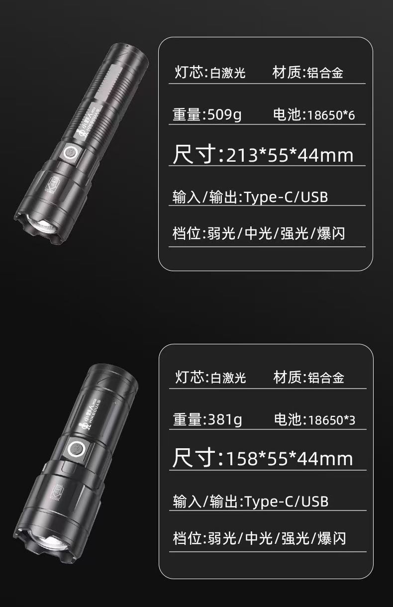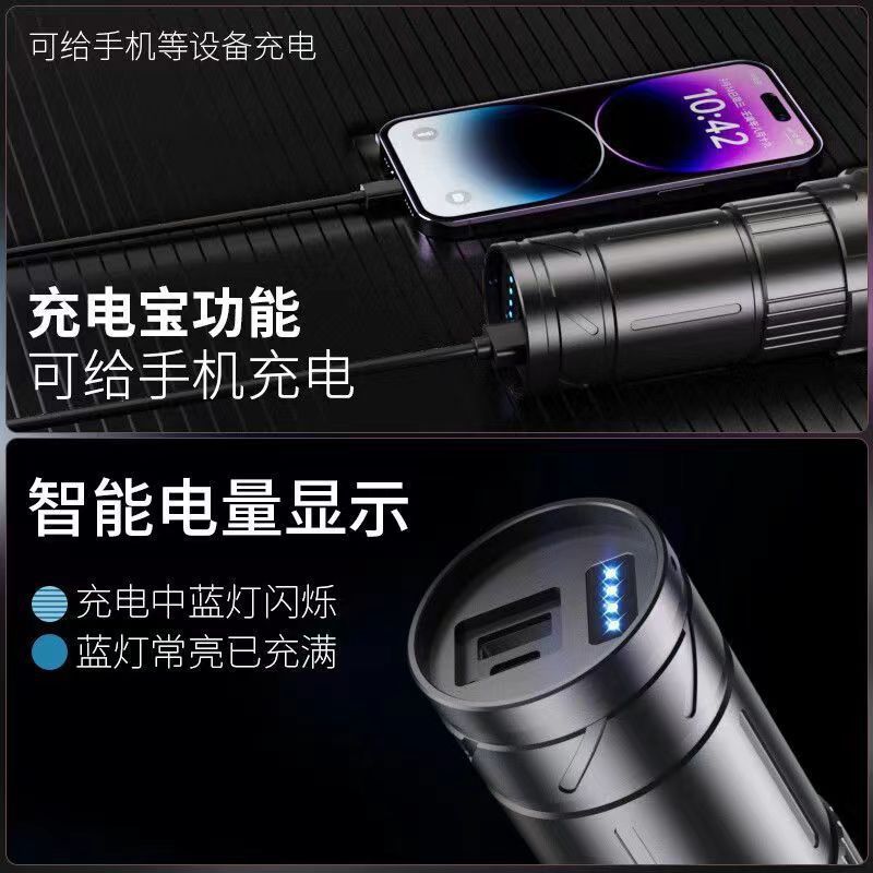 소형 야외용 강력 손전등, 충전식 비상등, 레이저 손전등, 무선 충전 작업등스토어 가기