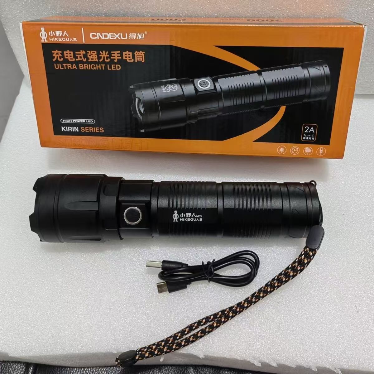 소형 야외용 강력 손전등, 충전식 비상등, 레이저 손전등, 무선 충전 작업등