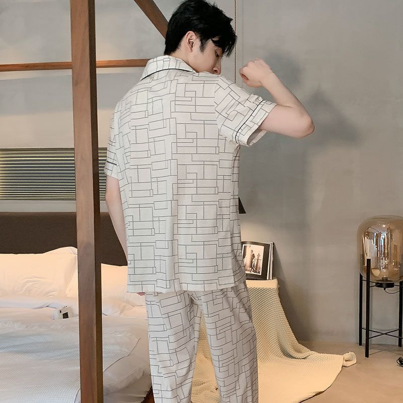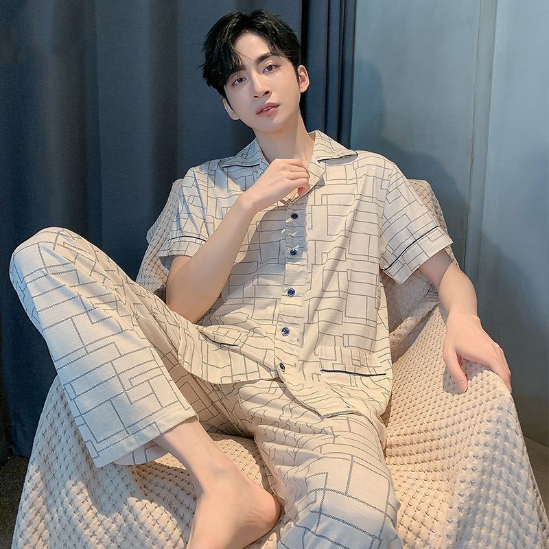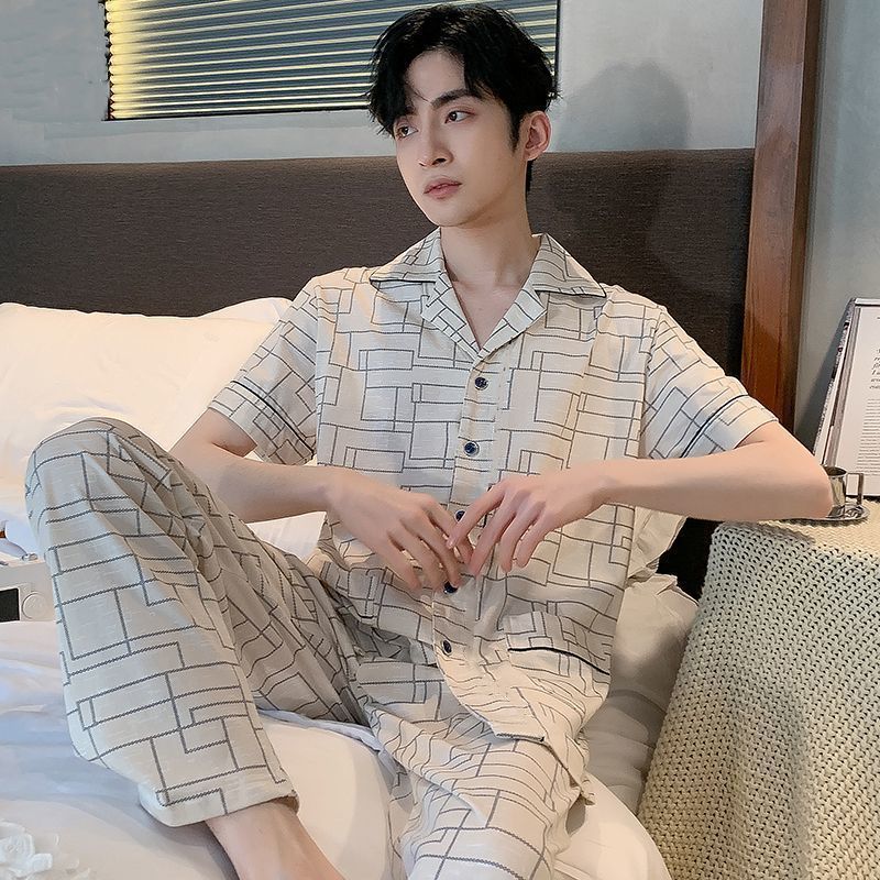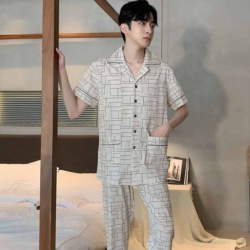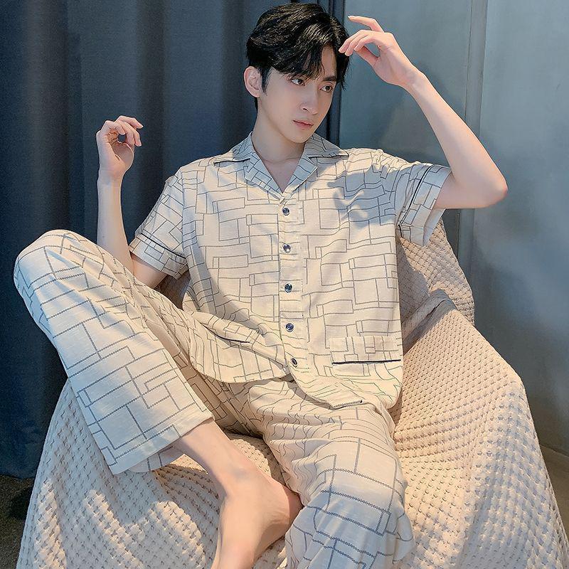코튼 남자 잠옷 여름 고가 반소매 바지 여름 하이 엔드 반소매 카디건 플러스 사이즈 홈 의류