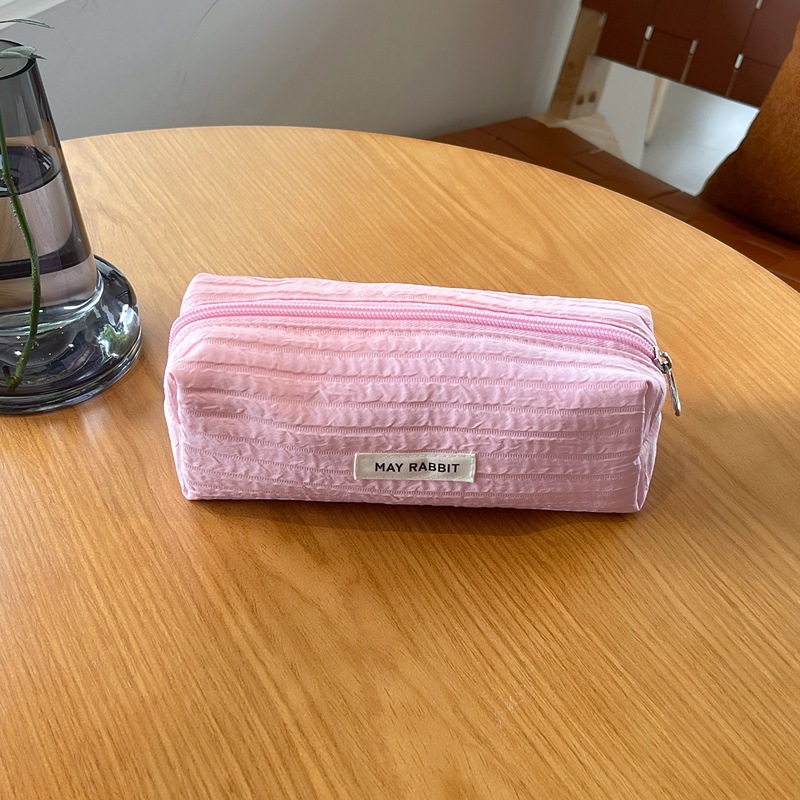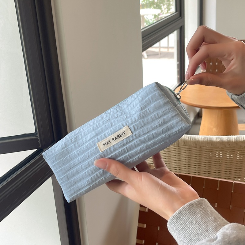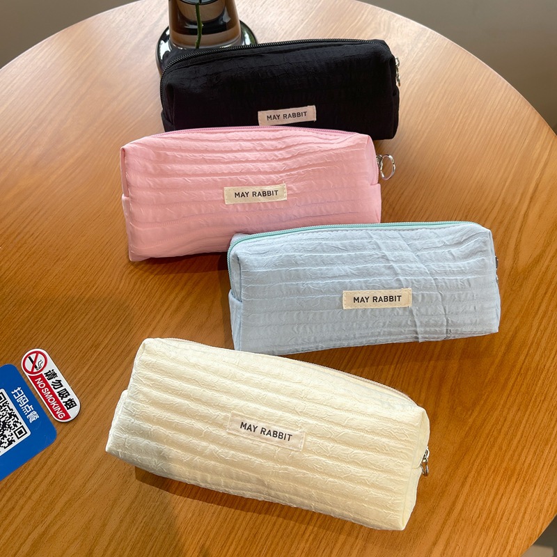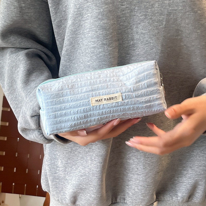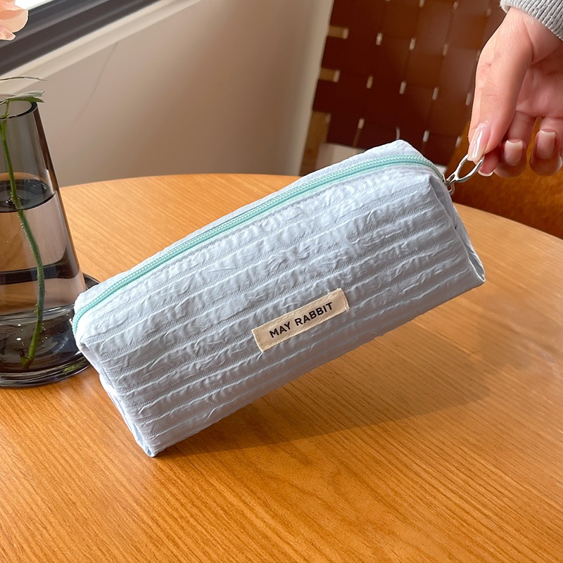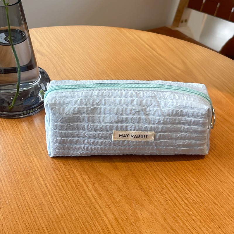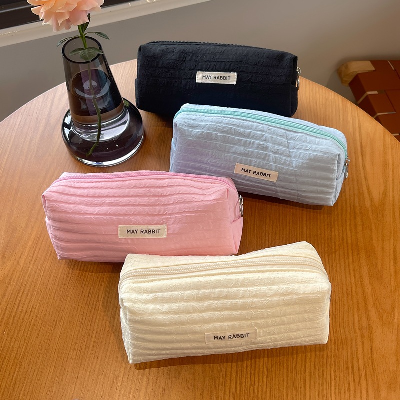 MAYRABBIT 솔리드 컬러 스트라이프 폼 연필 케이스 학생 대용량 저장 가방 신선한 간단한 핸드 메이크업 가방