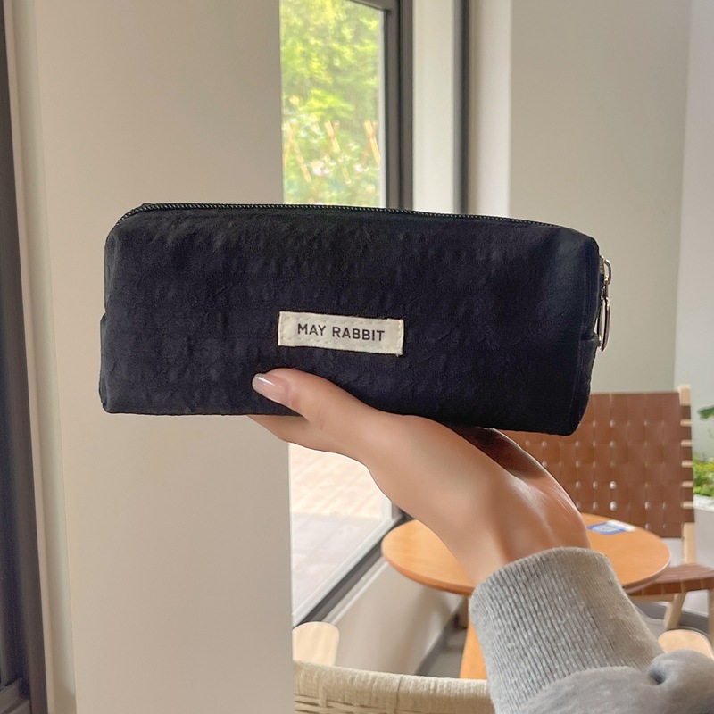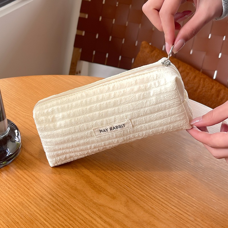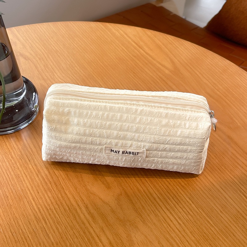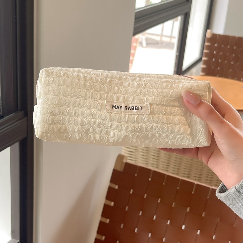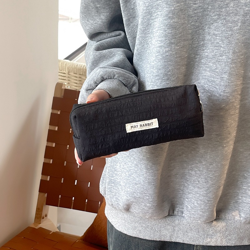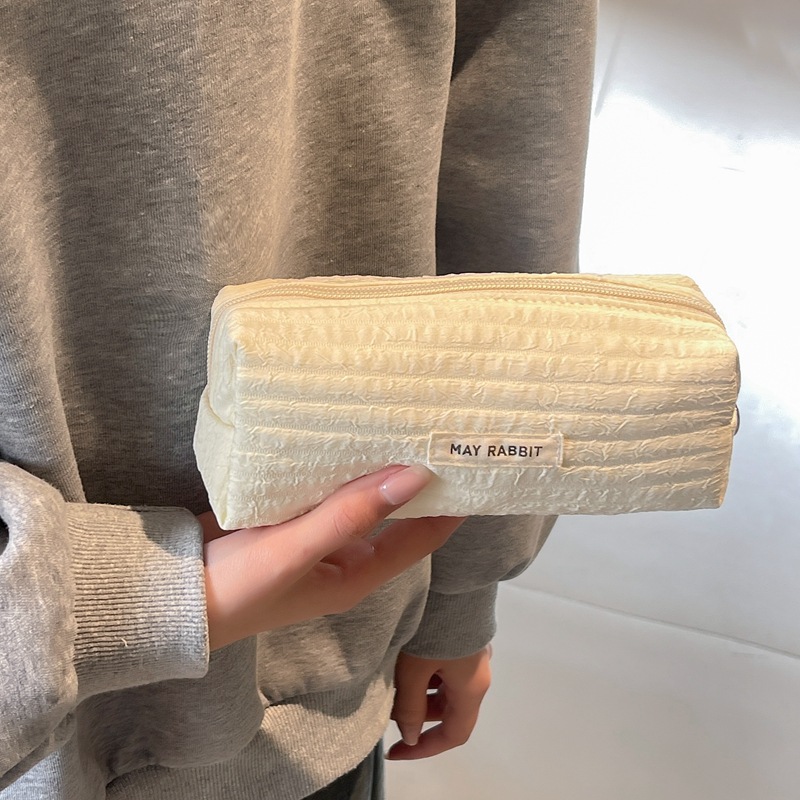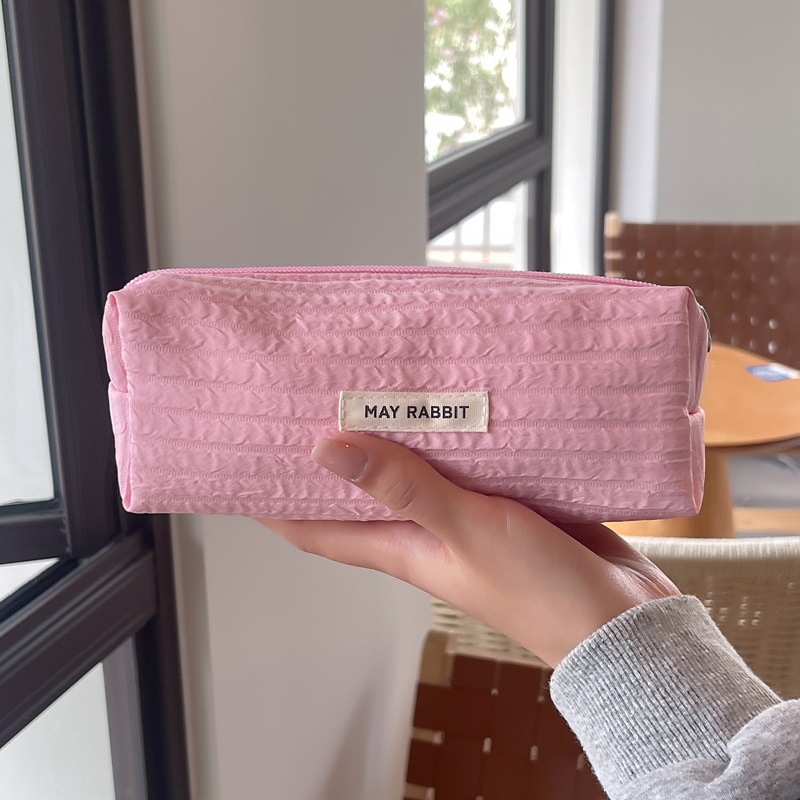 MAYRABBIT 솔리드 컬러 스트라이프 폼 연필 케이스 학생 대용량 저장 가방 신선한 간단한 핸드 메이크업 가방