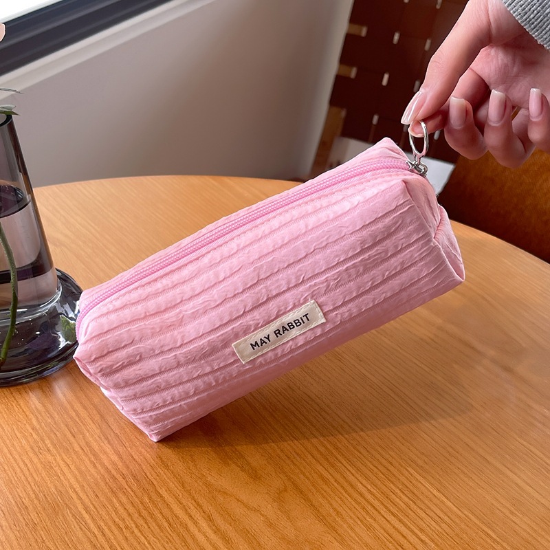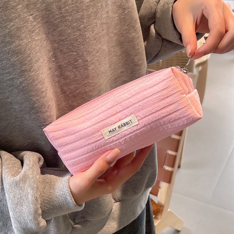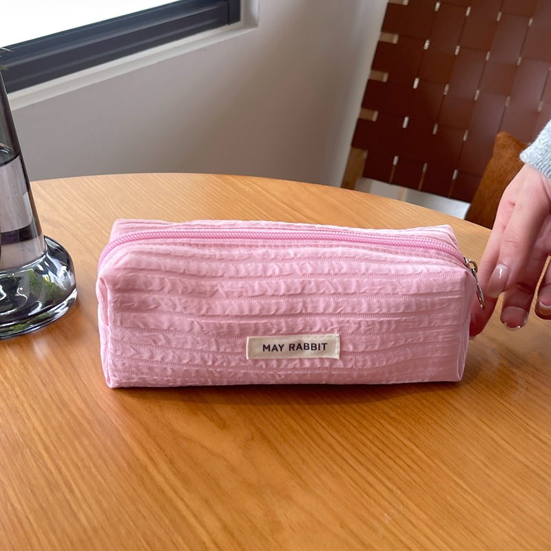MAYRABBIT 솔리드 컬러 스트라이프 폼 연필 케이스 학생 대용량 저장 가방 신선한 간단한 핸드 메이크업 가방스토어 가기