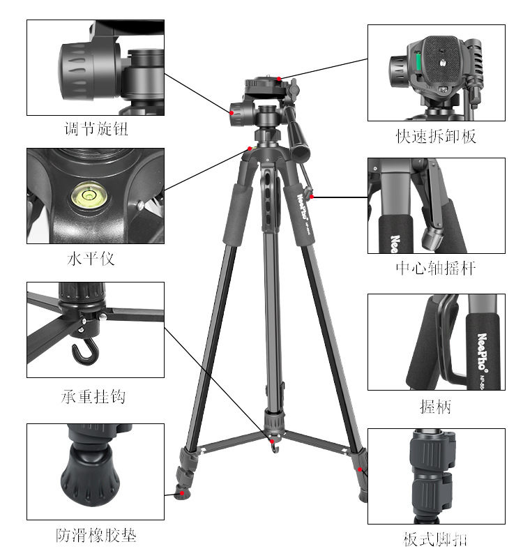NP-8840 알루미늄 합금 1.8 미터 휴대 전화 사진 셀카 안정제 야외 라이브 여행 삼각대 브래킷