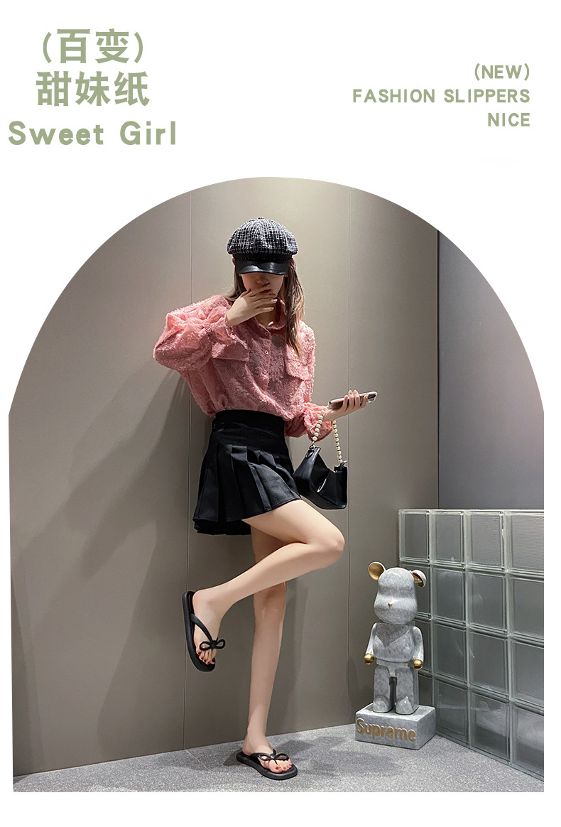 여성용 여름 리본 슬리퍼, 패셔너블한 아우터, 다재다능한 인터넷 연예인 인 요정 스타일 학생 슬리퍼, 비치 슬리퍼