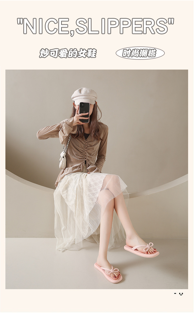 여성용 여름 리본 슬리퍼, 패셔너블한 아우터, 다재다능한 인터넷 연예인 인 요정 스타일 학생 슬리퍼, 비치 슬리퍼스토어 가기