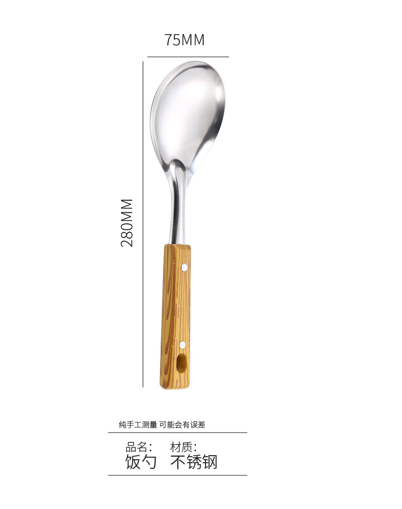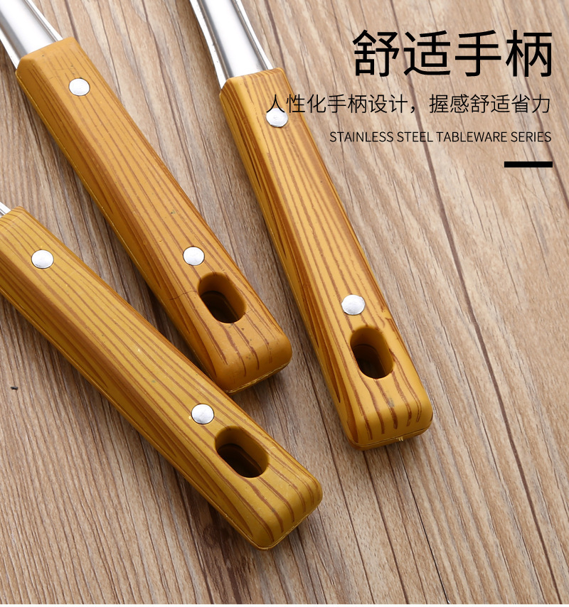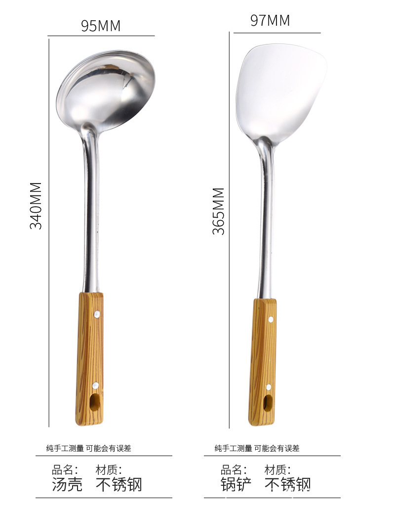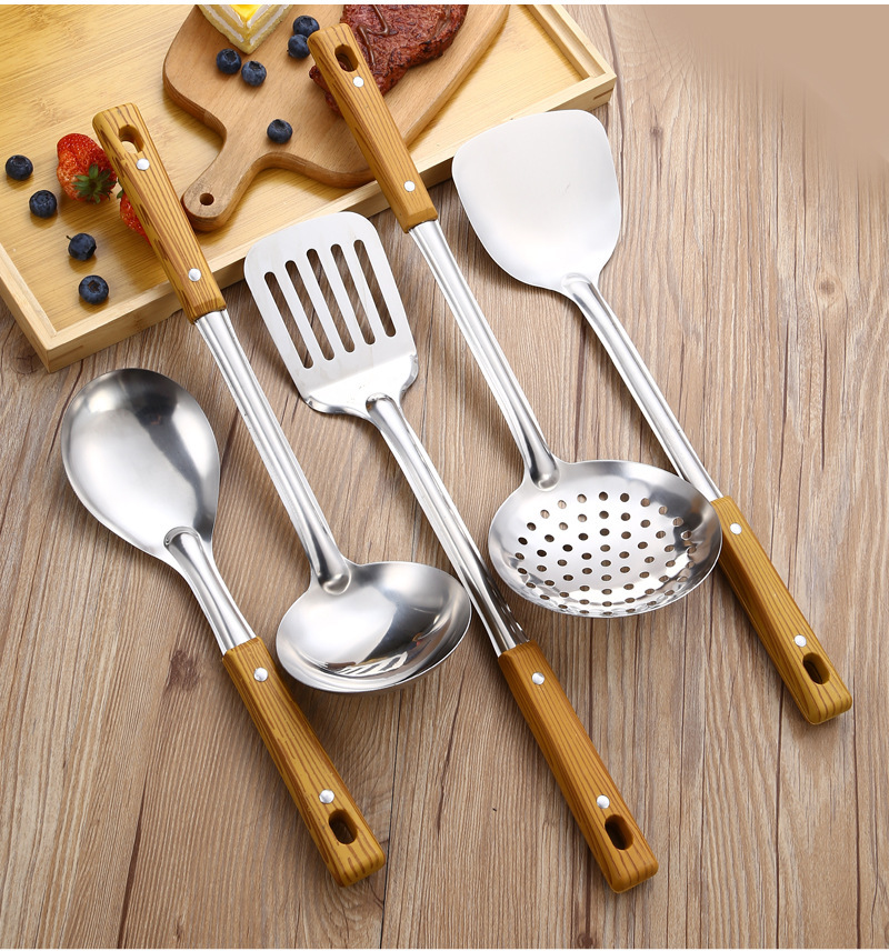 1.2 비 자성 스테인레스 스틸 냄비 삽 수프 스푼 우드 그레인 핸들 볶음 삽 스푼 색소 가구 요리 주방용품 5 피스 세트