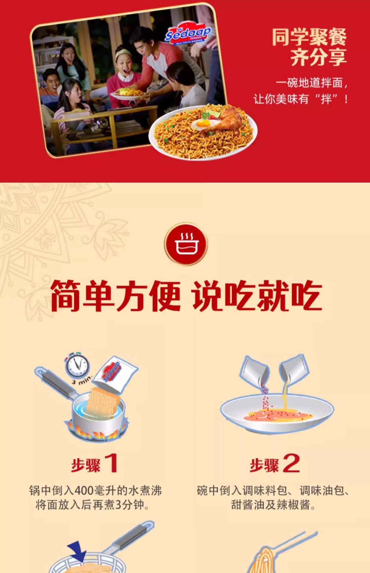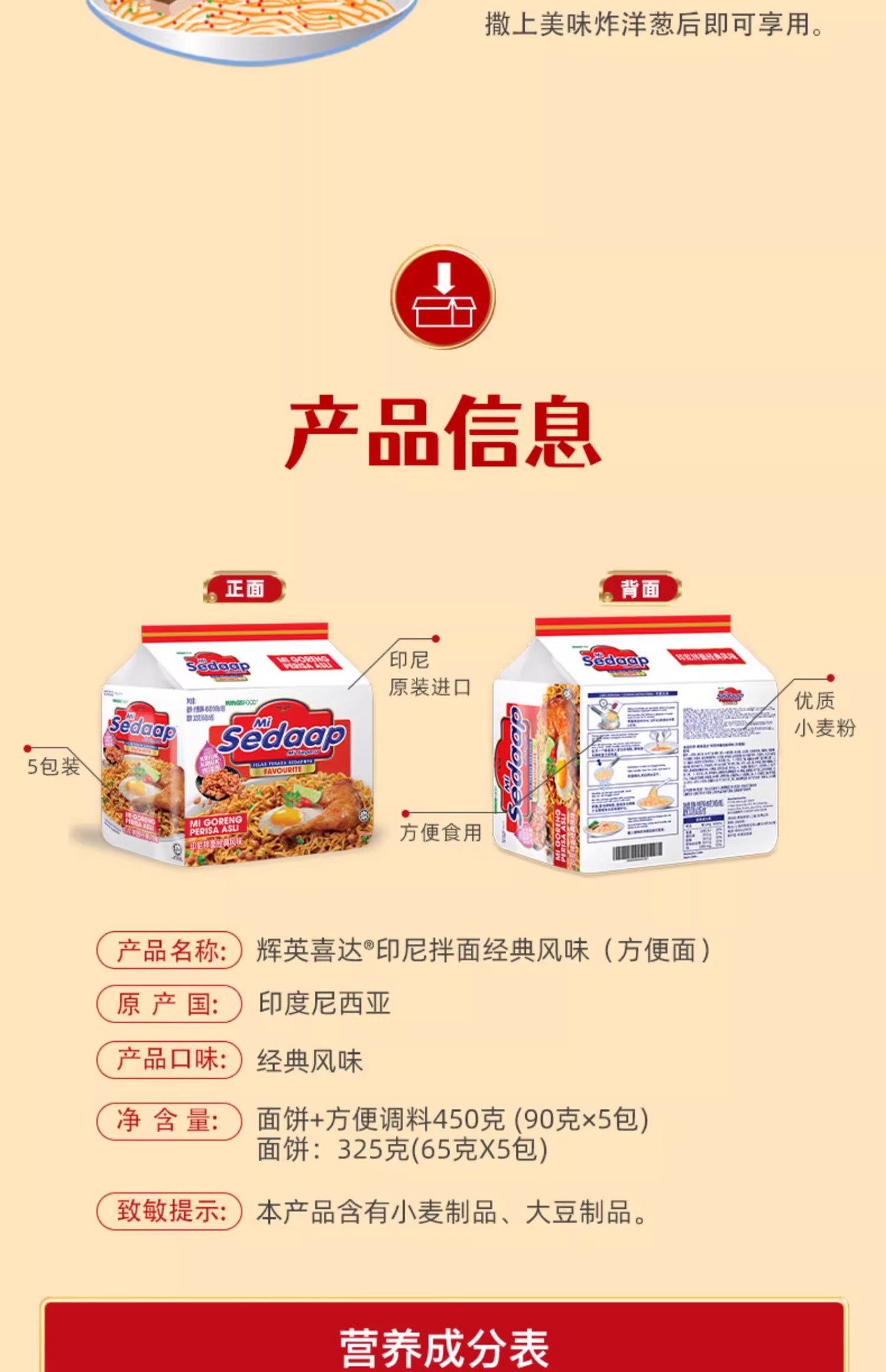 인도네시아, Huiying 스타터 드라이 누들 세다프 국수 그물 레드 프라이드 치킨 즉석 국수 패스트 푸드를 위해 수입스토어 가기