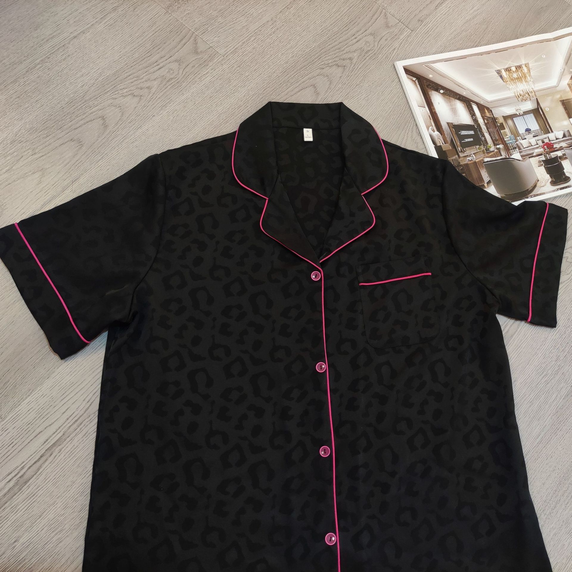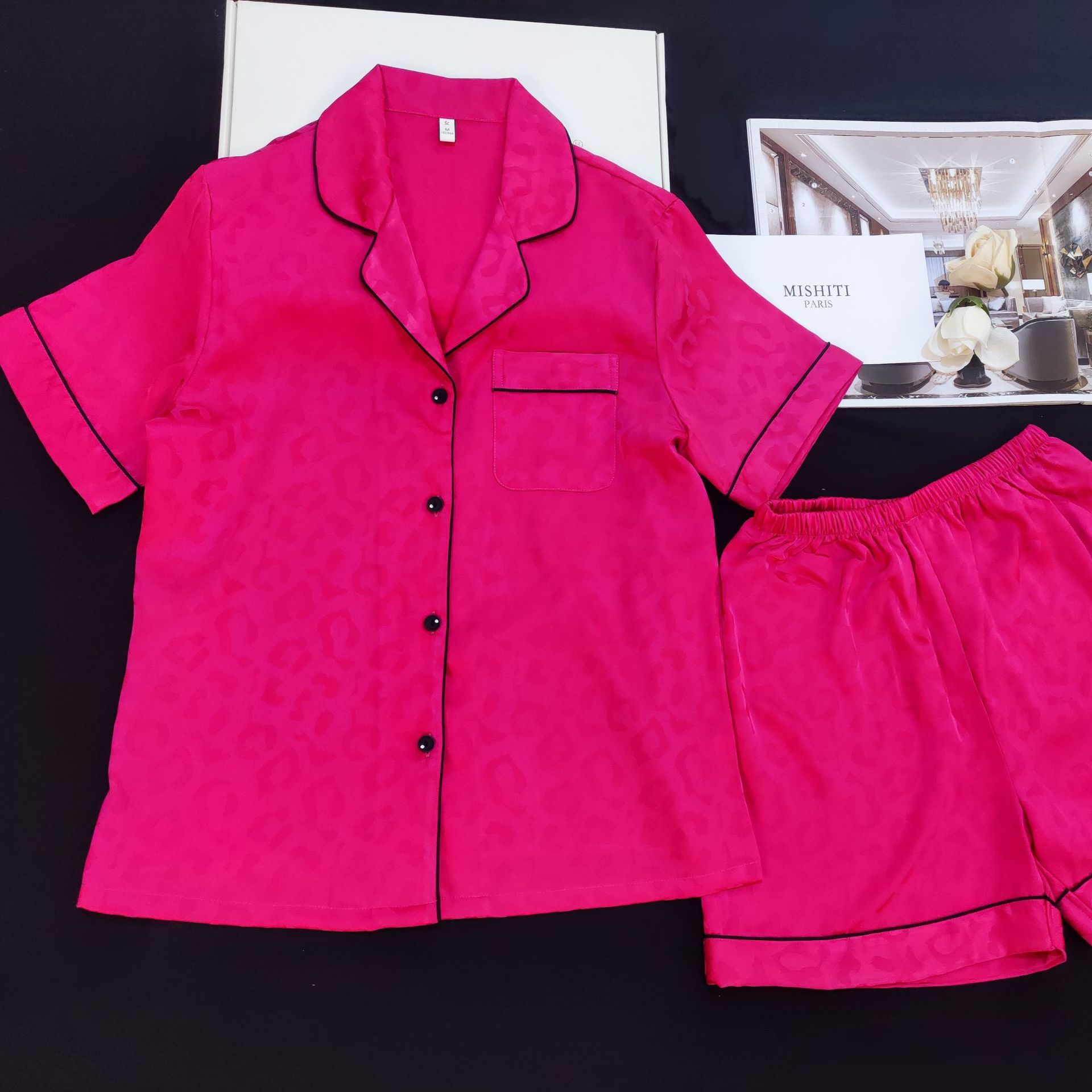 2024 대외 무역 국경 간 아이스 실크 반팔 반바지 모조 실크 파자마 반팔 바지 흔들어 톤 작은 빨간 승마 책 홈 옷 배치