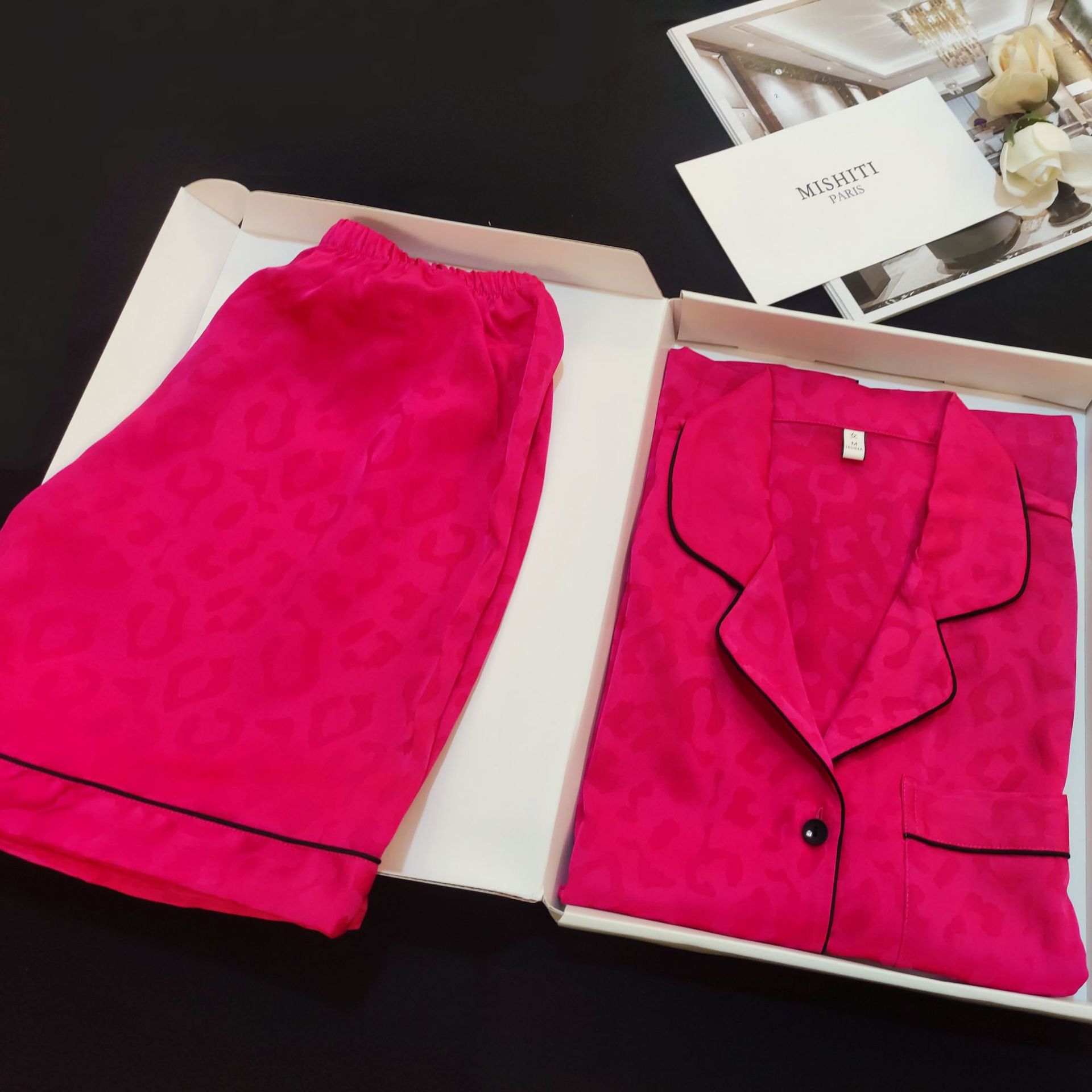 2024 대외 무역 국경 간 아이스 실크 반팔 반바지 모조 실크 파자마 반팔 바지 흔들어 톤 작은 빨간 승마 책 홈 옷 배치스토어 가기