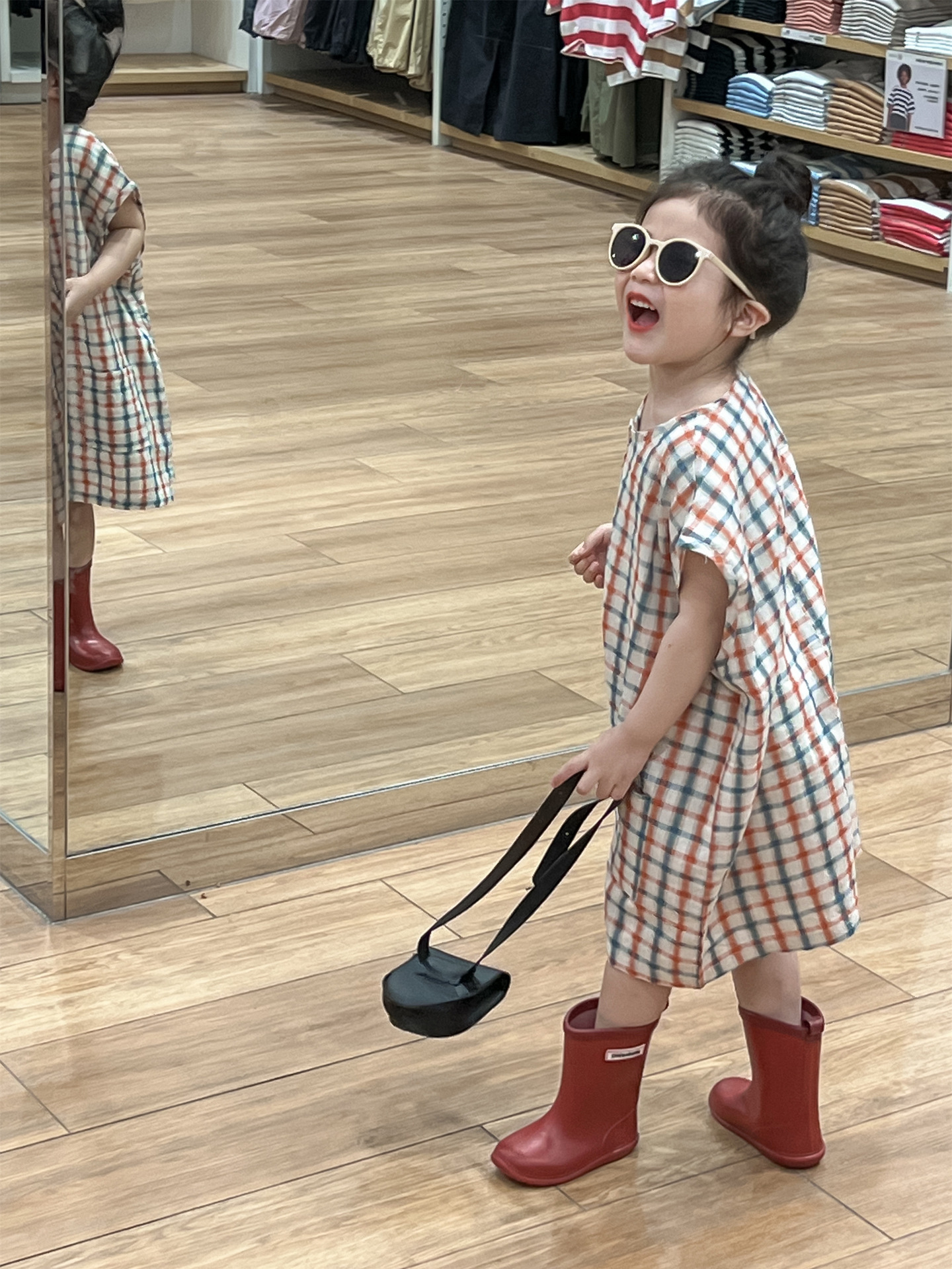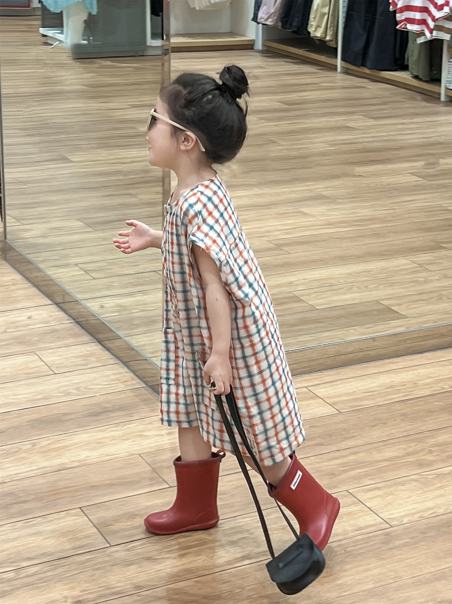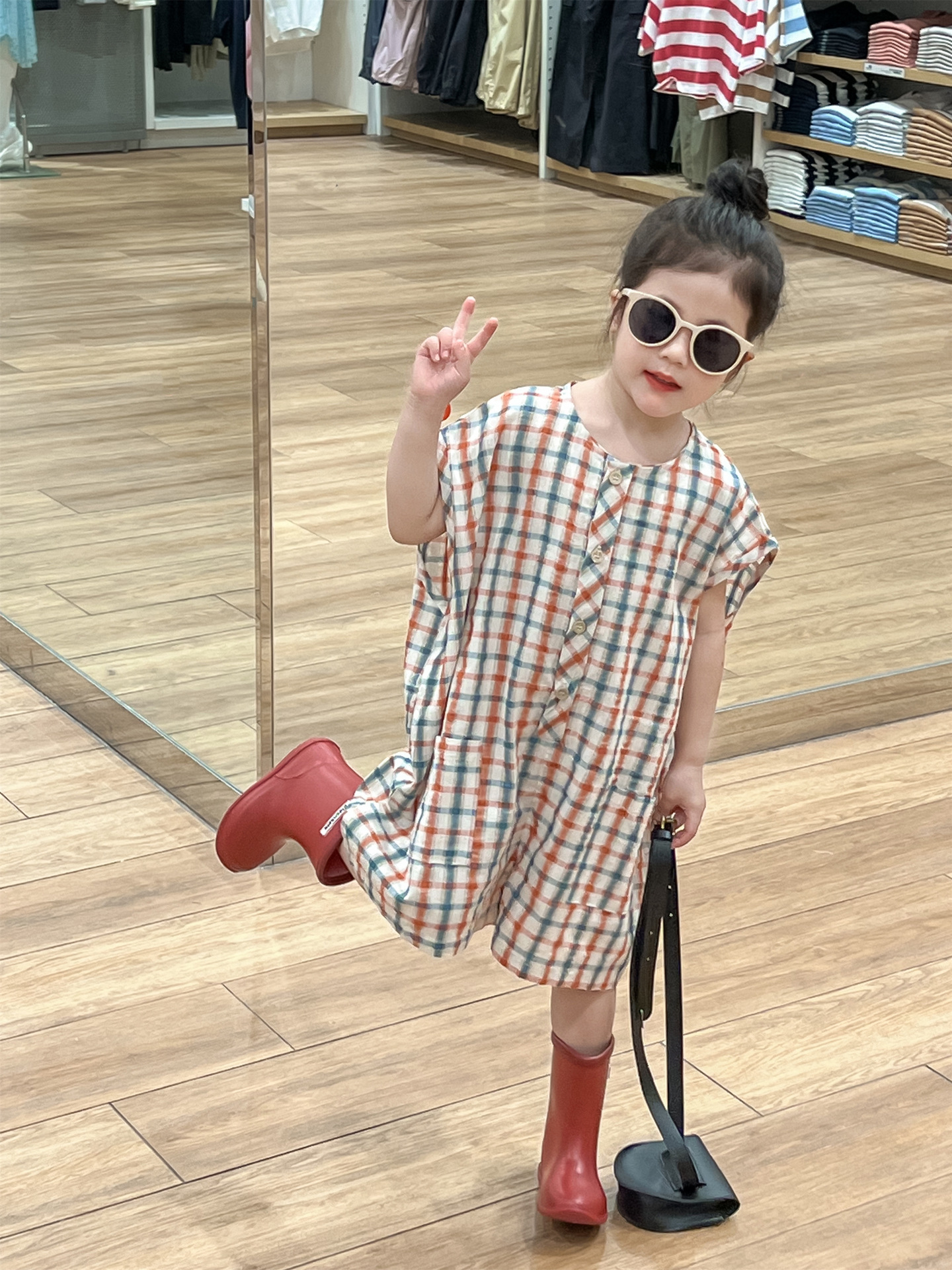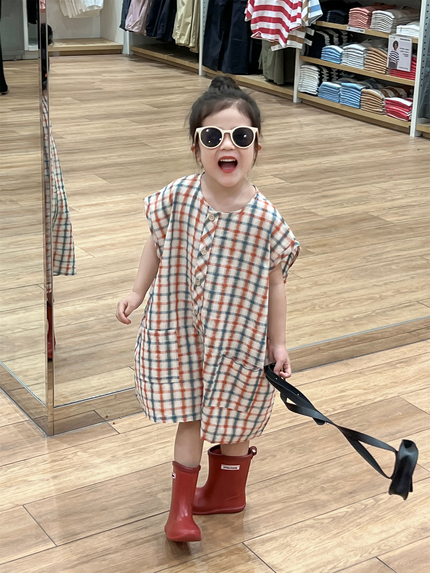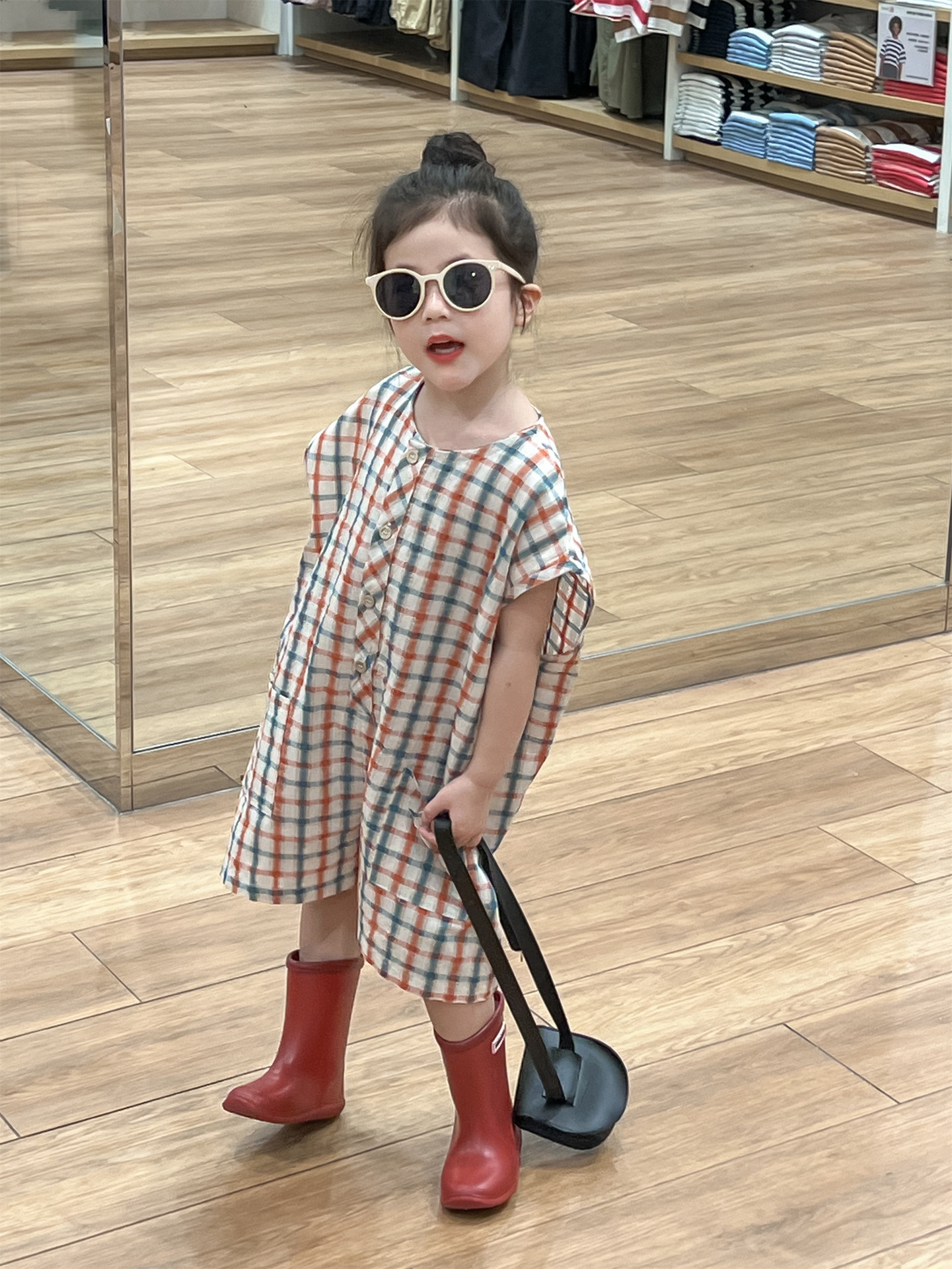 소년 소녀 아기의 여름 땀 흡수성 통기성 버블 체크 무늬 느슨한 와이드 레그 점프 수트 반바지를위한 아기와 유아의 점프 수트스토어 가기