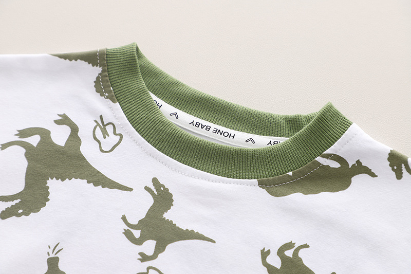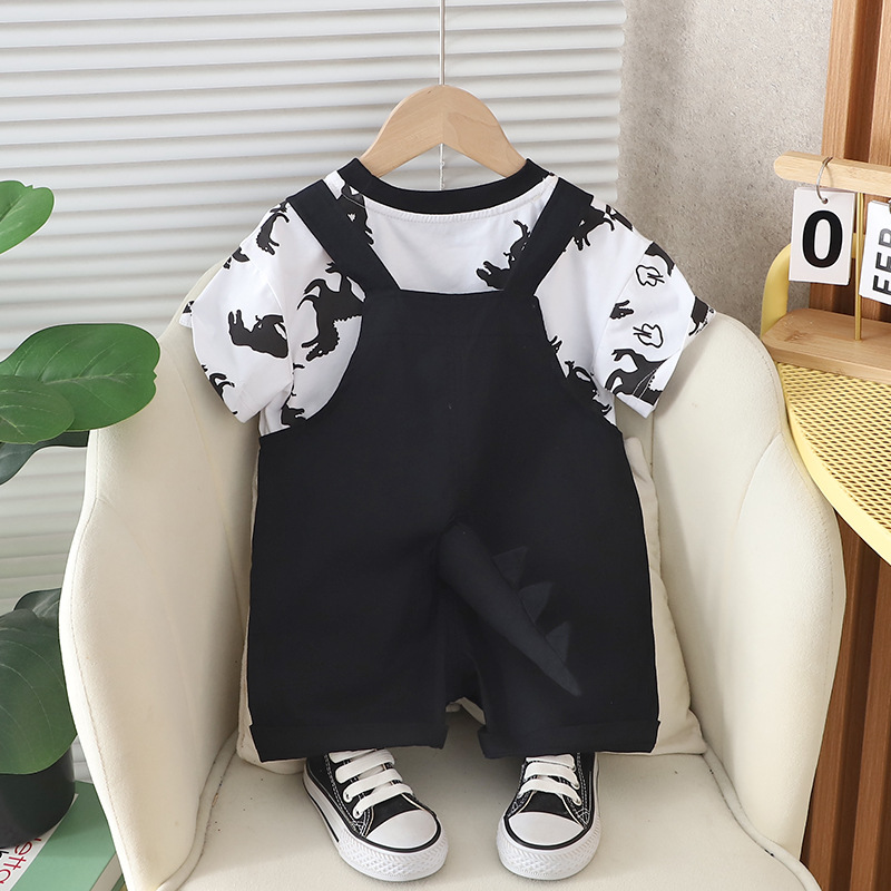 소년들 여름 반소매 세트 새 아이들 한국 잘 생긴 소년들 여름 풀 프린트 공룡 스트랩 반팔 세트스토어 가기