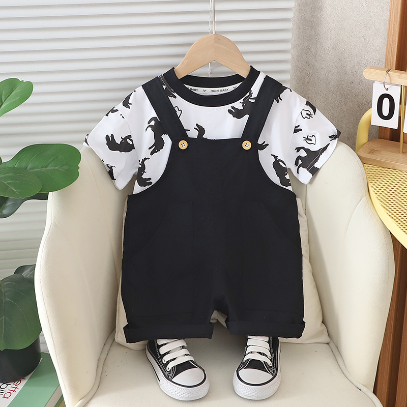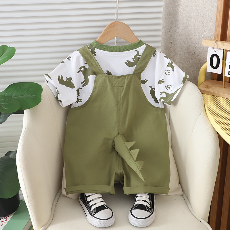 소년들 여름 반소매 세트 새 아이들 한국 잘 생긴 소년들 여름 풀 프린트 공룡 스트랩 반팔 세트