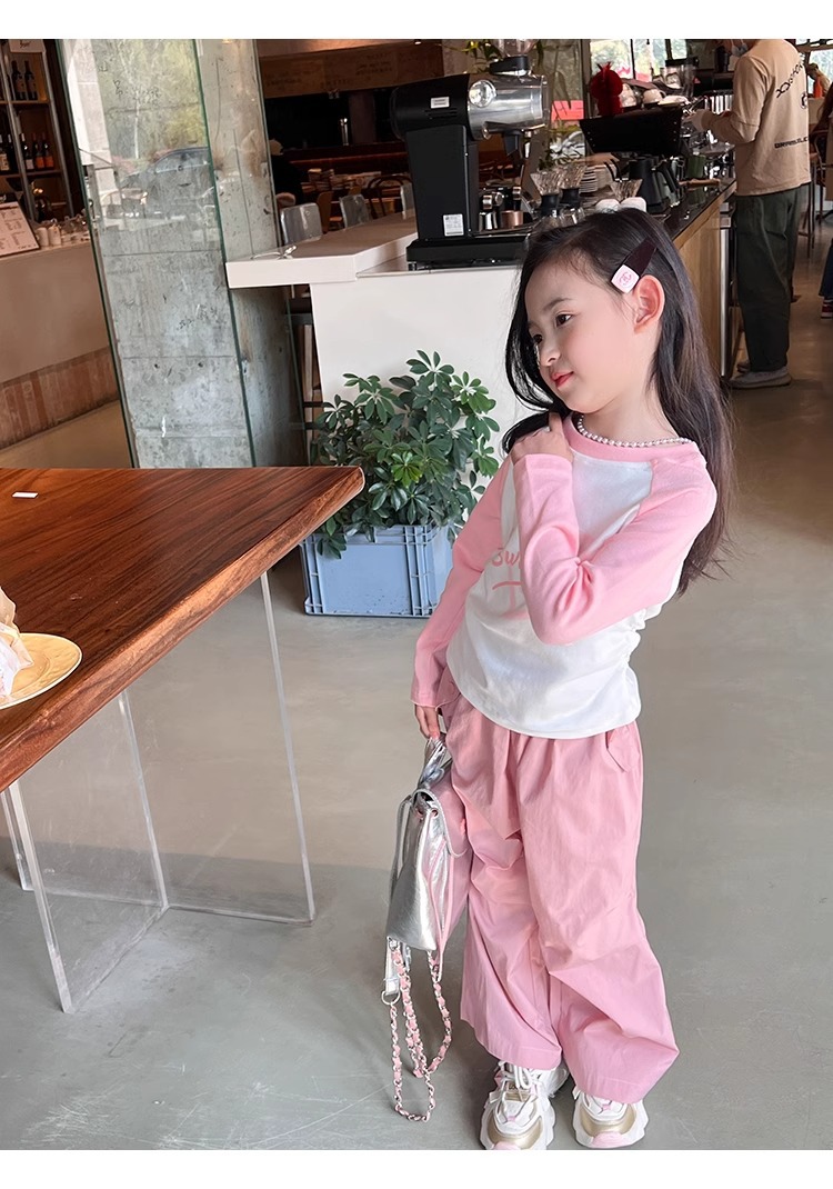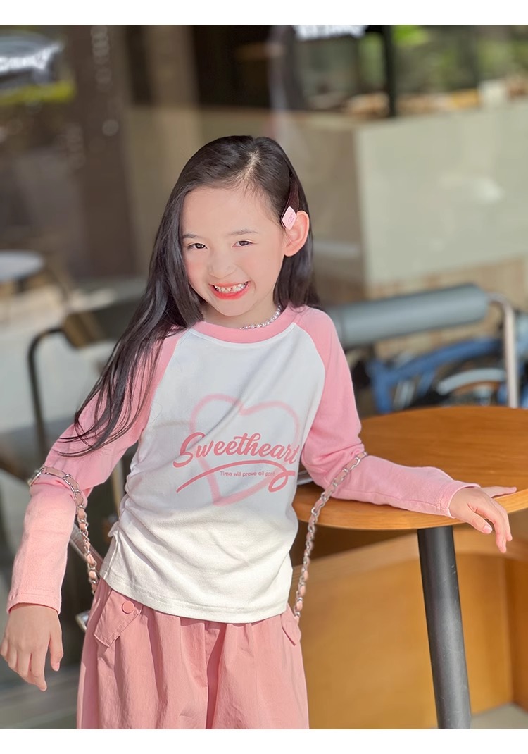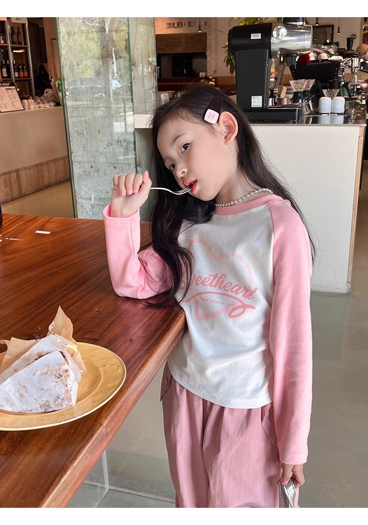 소녀 티셔츠 2024 봄 새로운 어린이 컬러 블록 탑 라글란 슬리브 아기의 캐주얼 긴 소매베이스 셔츠 봄스토어 가기