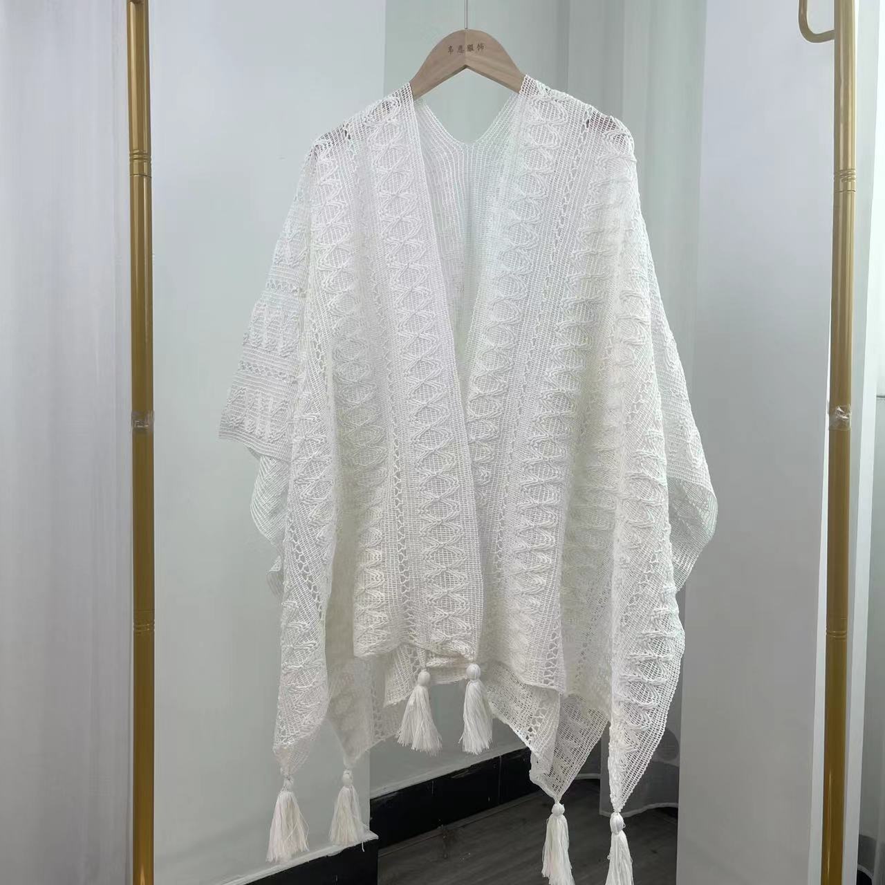2024 년 여름 새로운 니트 할로우 자카드 슬릿 목도리 윈난 관광 민족 스타일 사진 단색 목도리스토어 가기