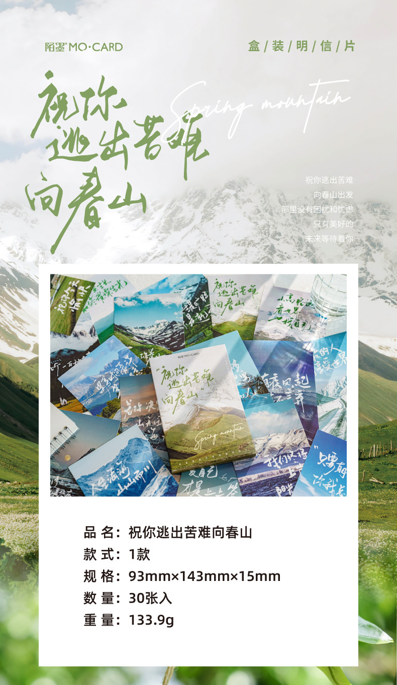 Mo Mo Postcard, 봄 산 하이 얀 값 문학 바람 산 생일 카드 장식 카드로 불행을 피하고 싶습니다.스토어 가기