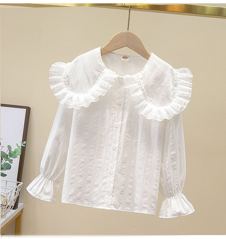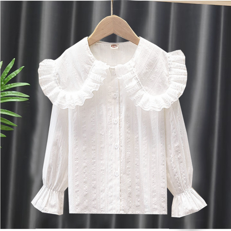 여자 셔츠 2025 봄 새로운 스타일 어린이 봄, 가을 인형 칼라 흰색 얇은 셔츠 여자 바닥 탑