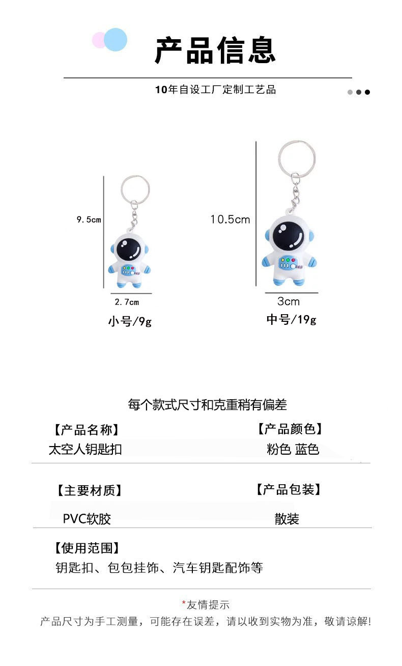 만화 우주 비행사 키 체인 학생 귀여운 휴대 전화 가방 우주 비행사 장식 키 체인 작은 선물 걸이 반지