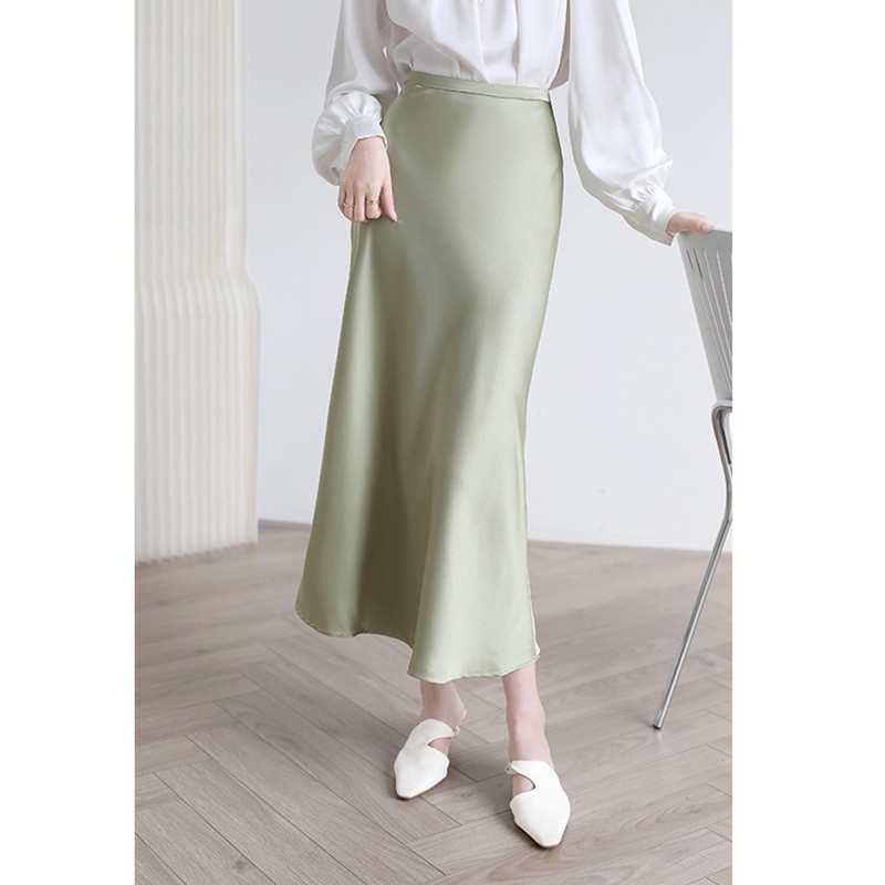 높은 허리 중간 길이의 사틴 프랑스 피쉬 테일 원피스 여성 2024 년 여름 새로운 딥 슬리밍 엉덩이 반쪽 길이 원피스 트렌디스토어 가기