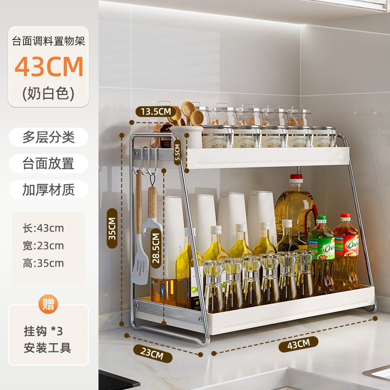 스테인레스 스틸 주방 양념 랙 더블 레이어 가정용 카운터 탑 조미료 보관 랙 다기능 소금 조미료 탱크 저장 랙