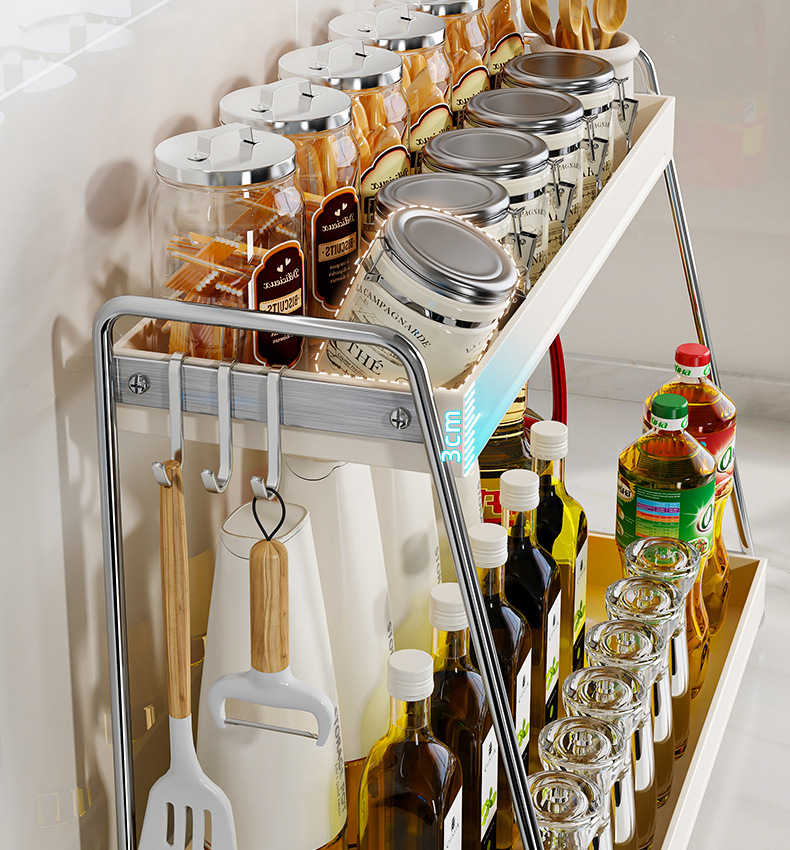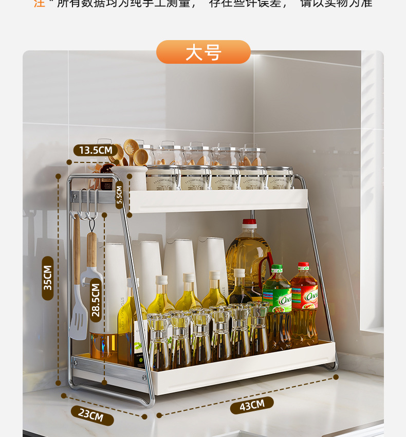 스테인레스 스틸 주방 양념 랙 더블 레이어 가정용 카운터 탑 조미료 보관 랙 다기능 소금 조미료 탱크 저장 랙스토어 가기