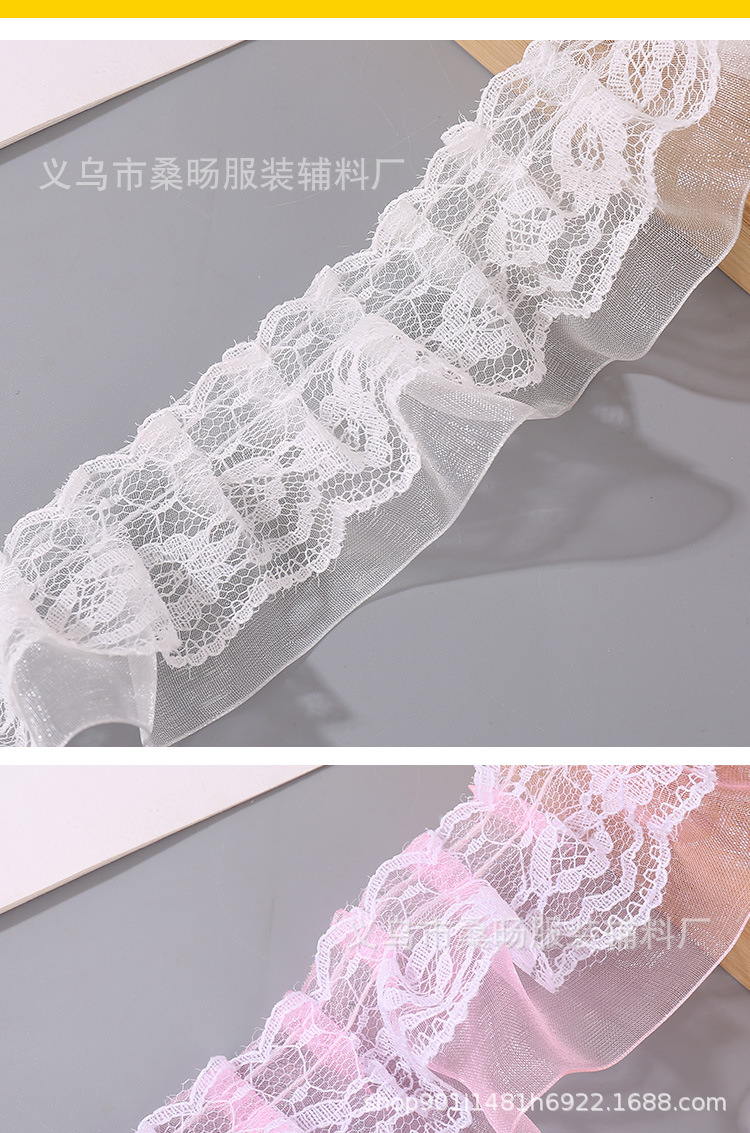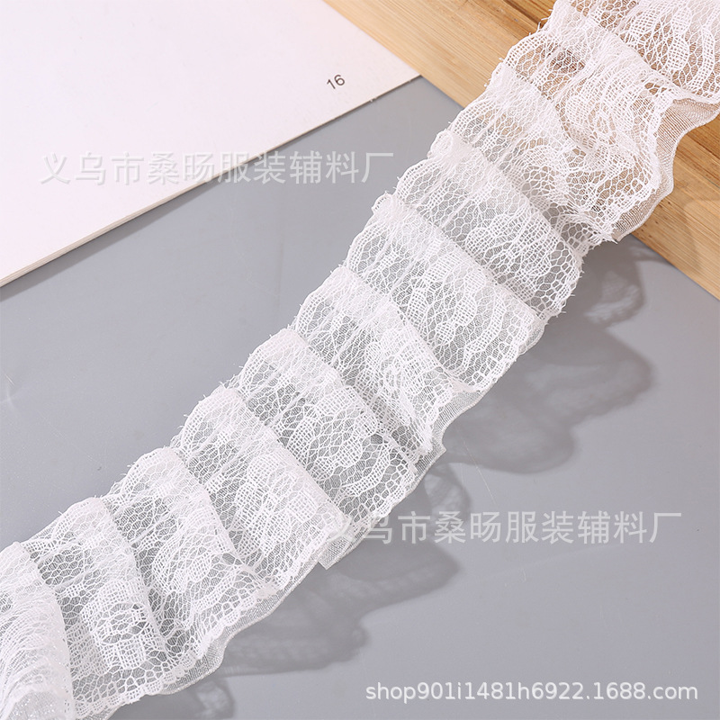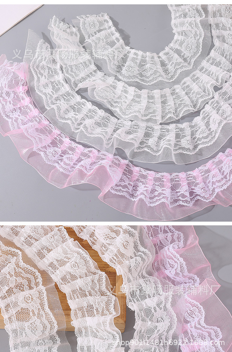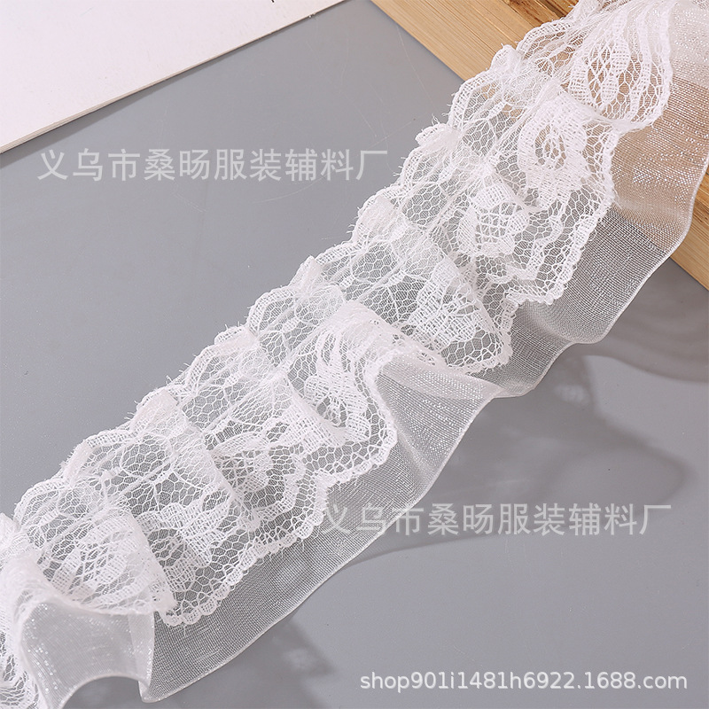 화이트 더블 레이어 플리츠 레이스 스노우 스트랩 레이스 수제 DIY 웨딩 원피스 스커트 할인 Auricularia 레이스 액세서리