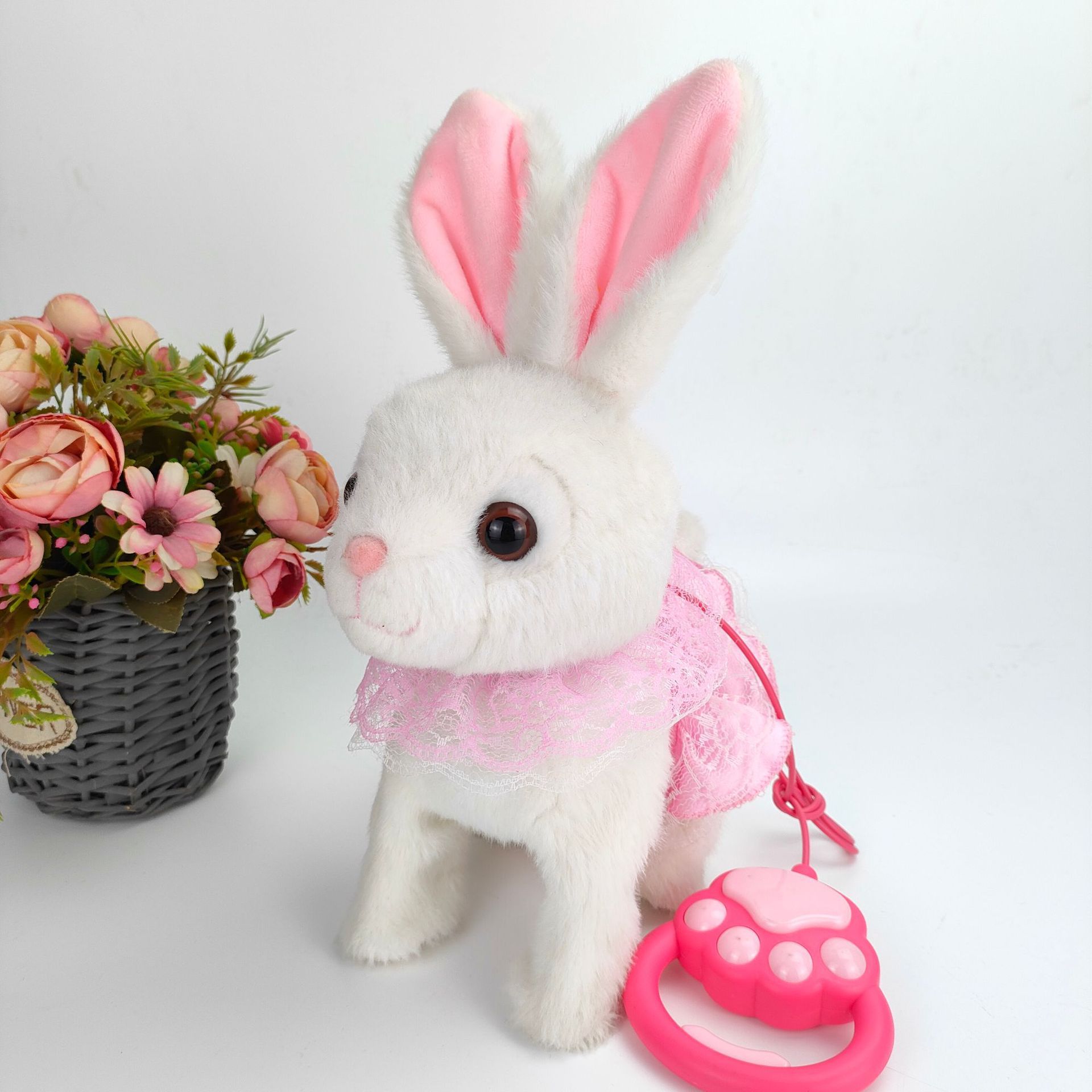 • 가죽끈 핑크 흰 토끼