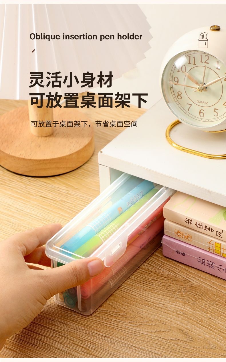 대용량 문구 투명 플라스틱 상자 학생 브러시 스케치 연필 케이스 문구 상자 쌓을 수있는 저장 상자스토어 가기