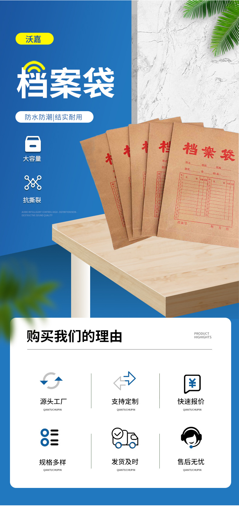 공장 도매 맞춤형 재고 A4 두꺼운 크라프트 종이 파일 가방 문서 가방 사무용품 학교 보관 가방