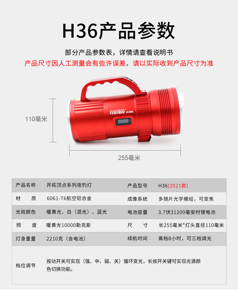 개척 정점 H36 밤 낚시 램프 낚시 램프 검은 구덩이 야생 낚시 3 조명 줌 미끼 램프 보조 조명