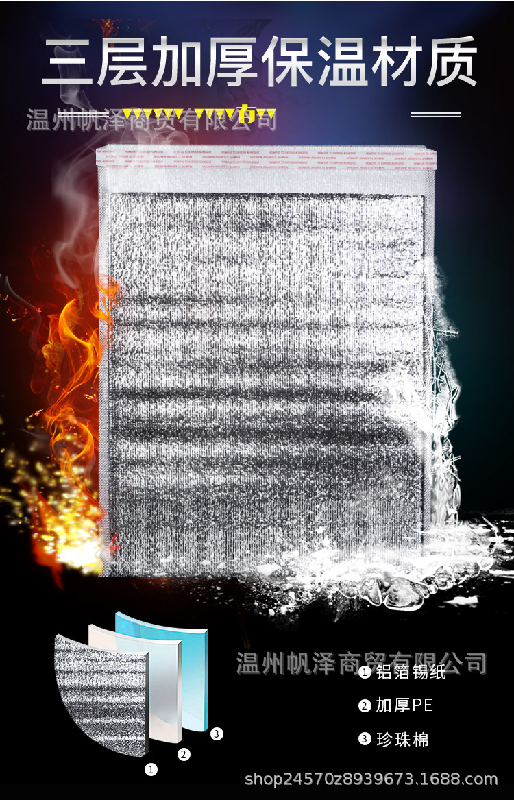접착제 일회용 테이크 아웃 피자 식품 해산물 두껍게 포장 냉장 단열 바베큐 냉장 보전이있는 알루미늄 호일 단열 가방