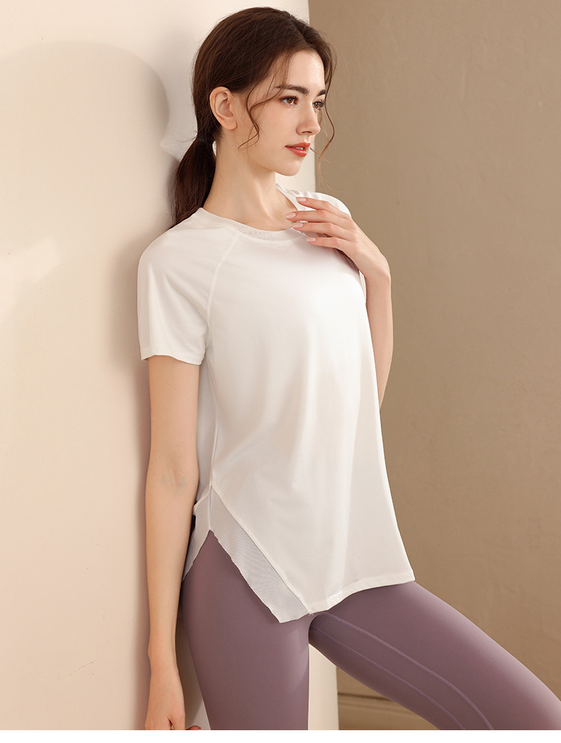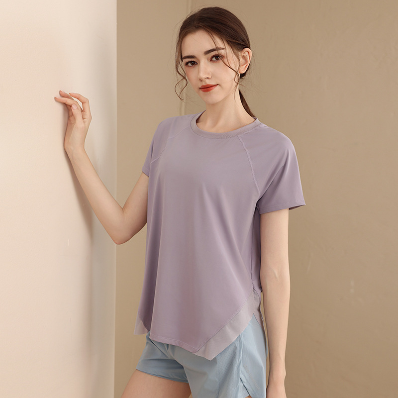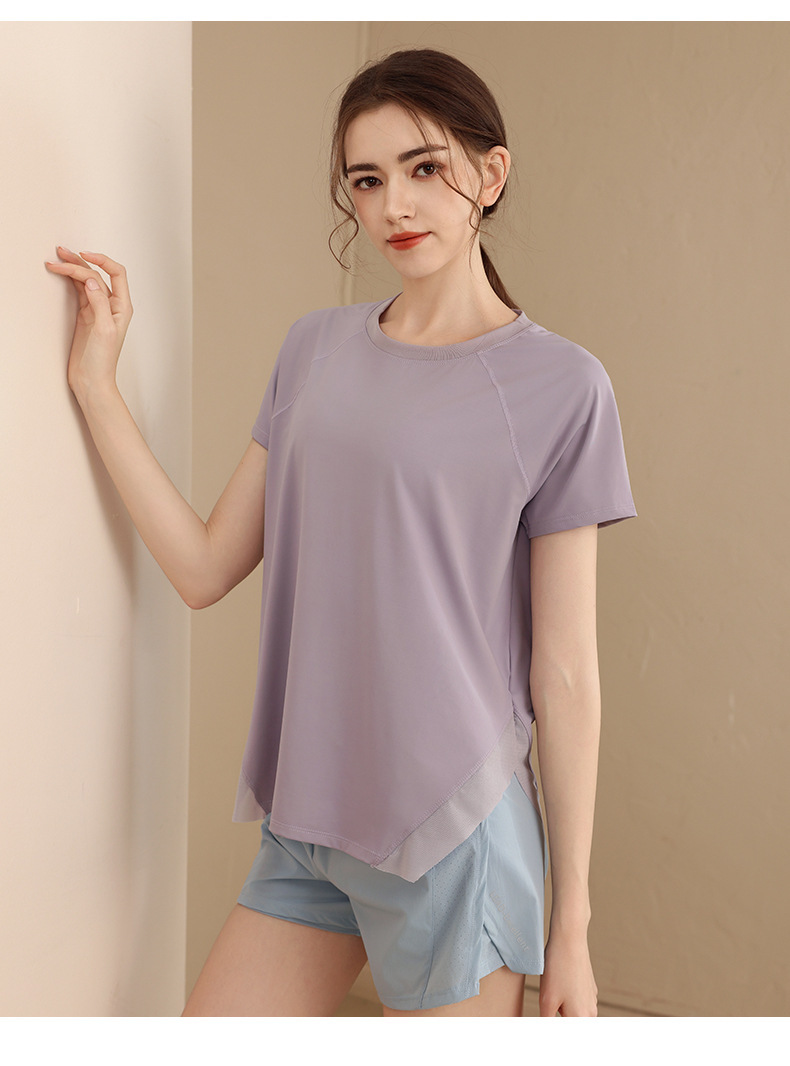 여성용 루즈핏 캐주얼 반팔 요가복, 속건성 스포츠 티셔츠, 통기성 러닝 트레이닝 피트니스 탑, 패셔너블스토어 가기