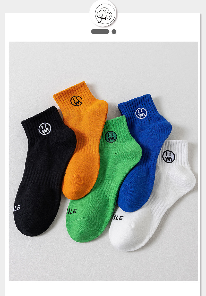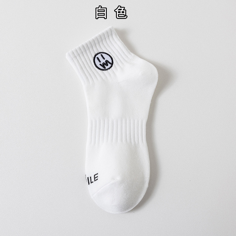 양말 남자 사계절 스포츠 허리 자수 스마일리 양말 콤비드 코튼 스웨트 쇼트 튜브 남성 보트 양말 편지 면 양말 흡수스토어 가기
