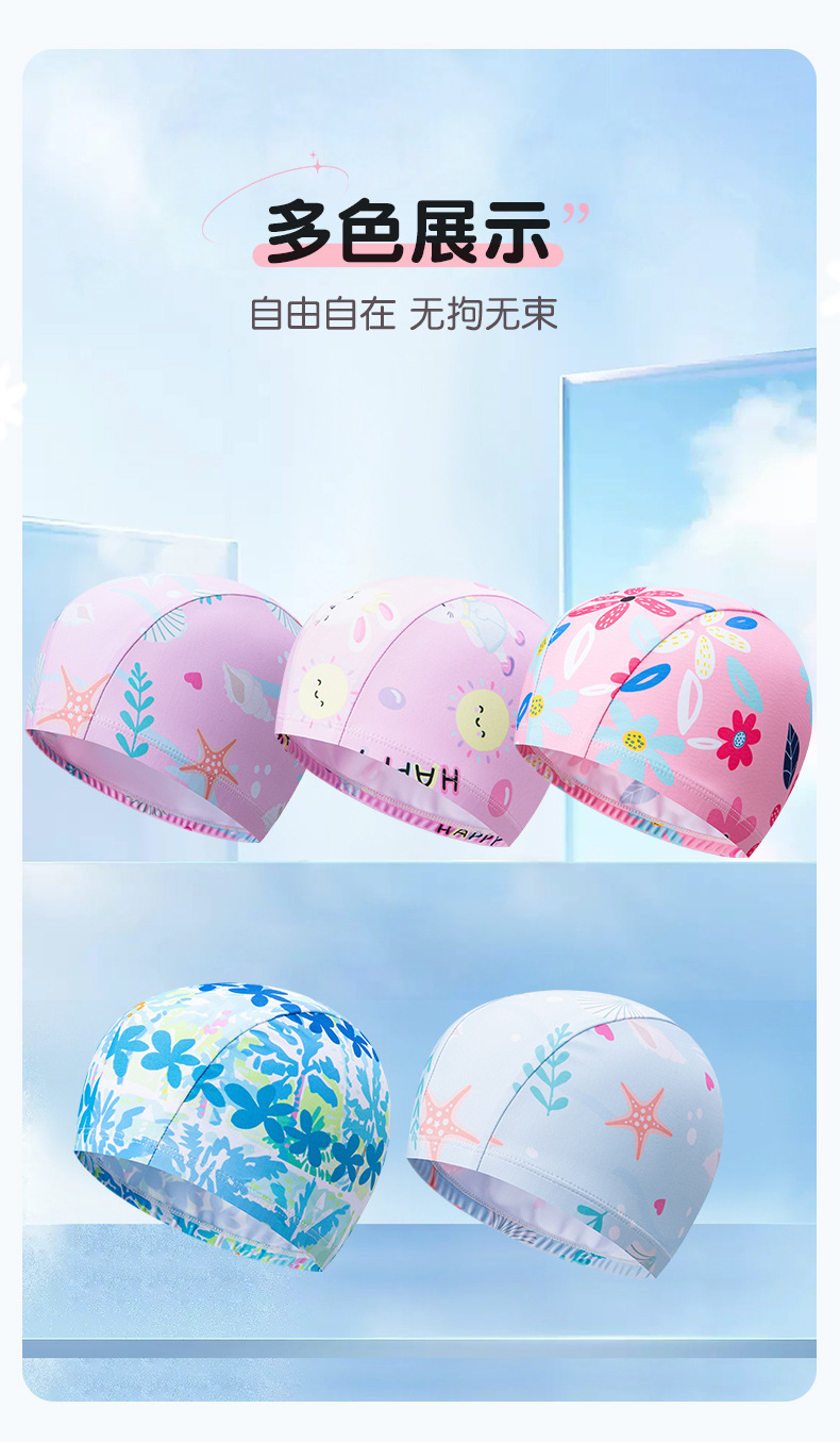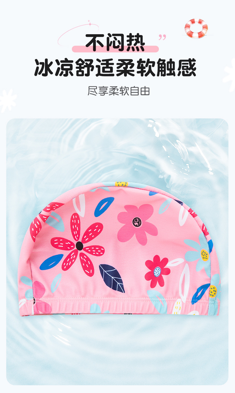 어린이 수영 모자 만화 인쇄 편안한 천 모자 아기 수영 탄성 모자 여자 초등학교 수영장 장비스토어 가기