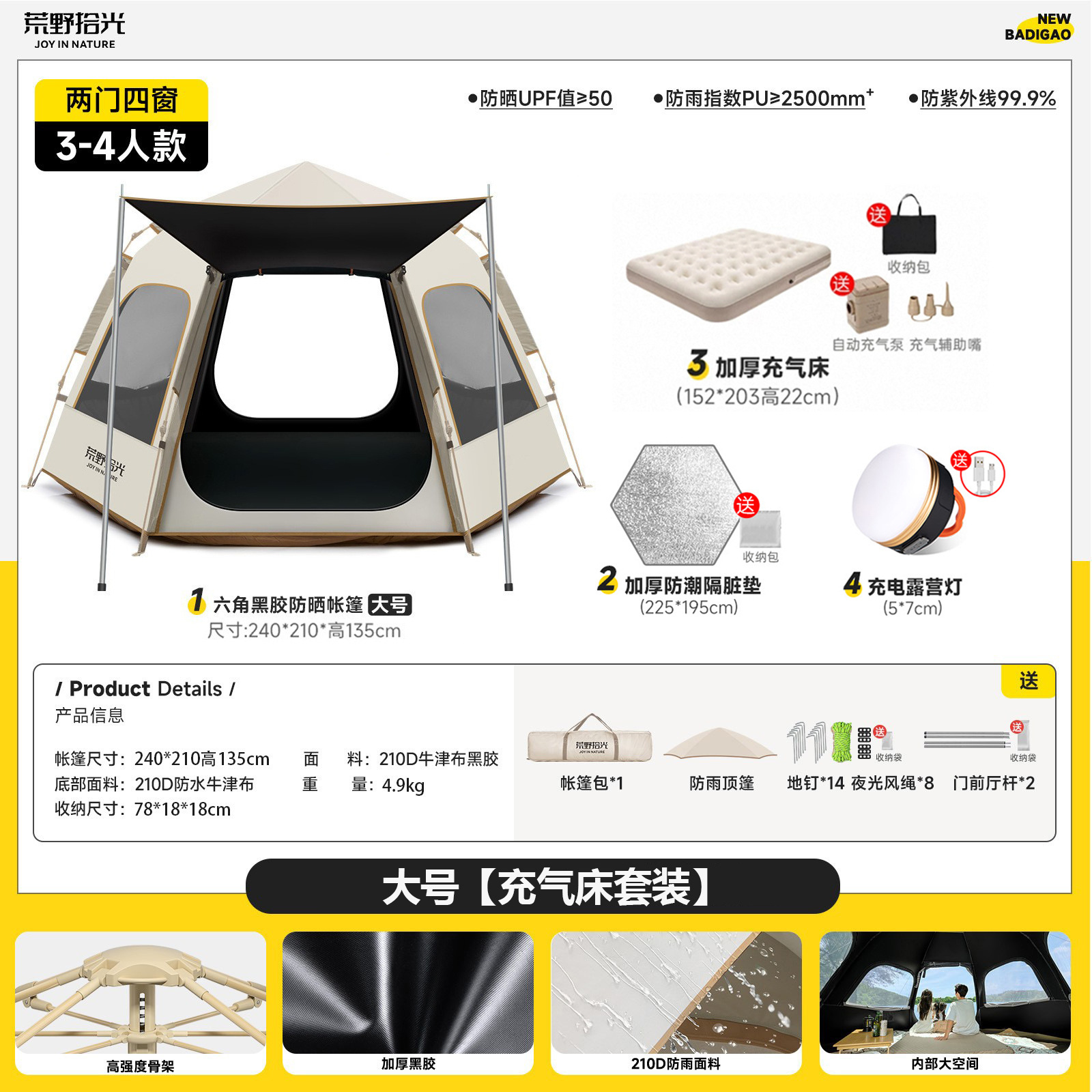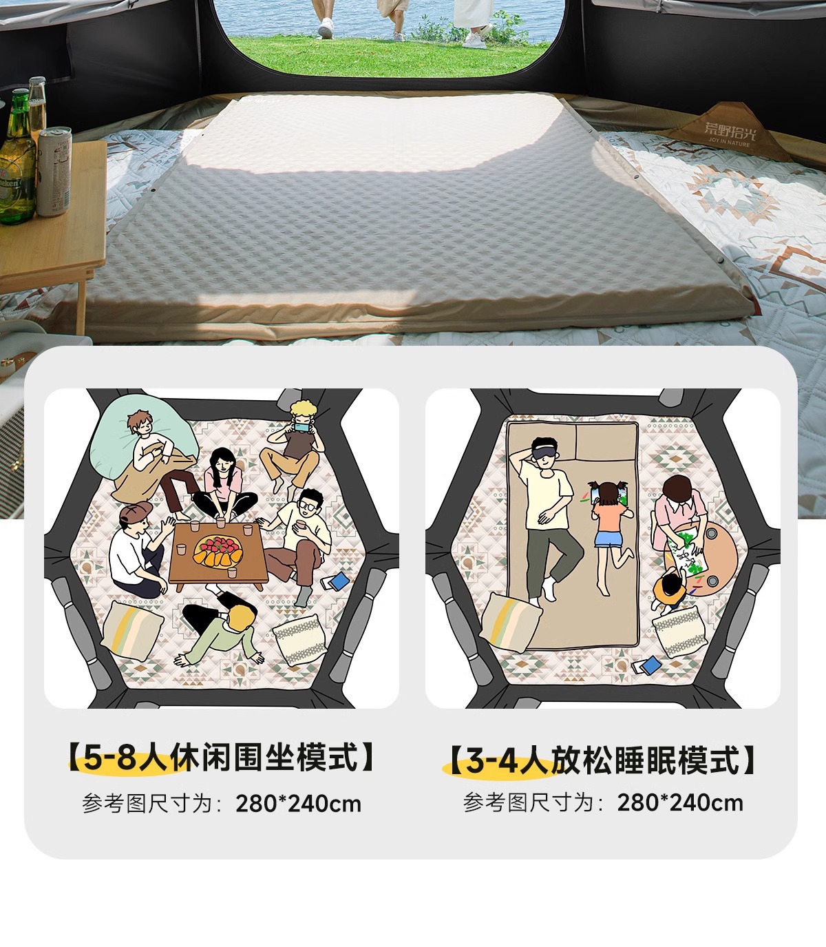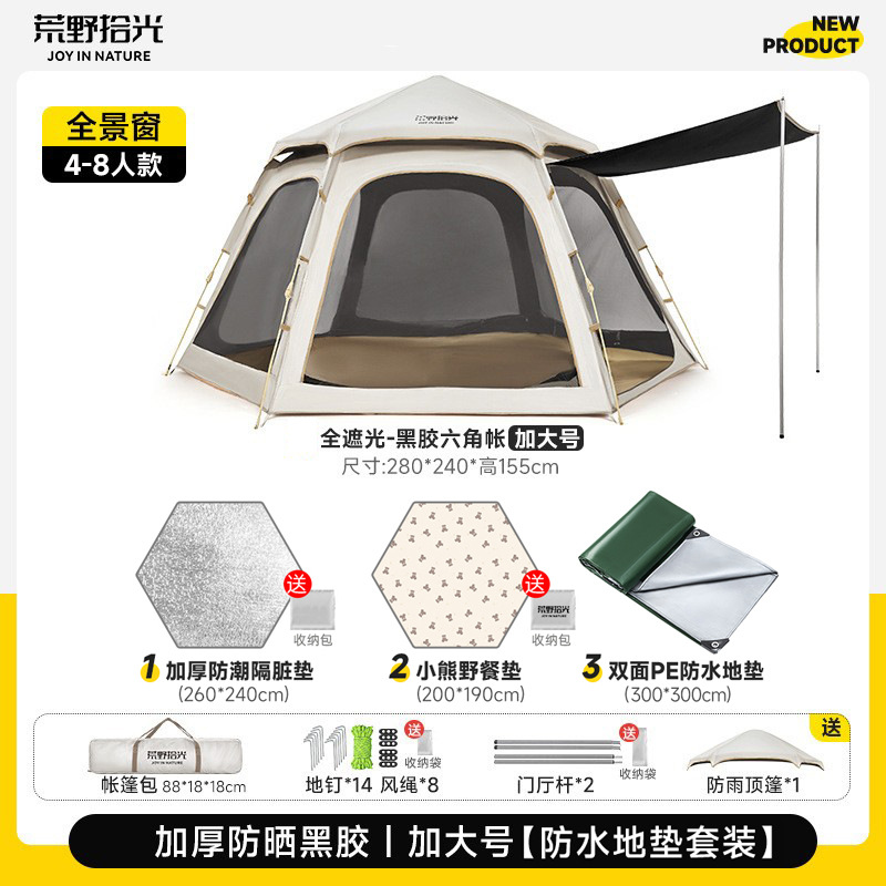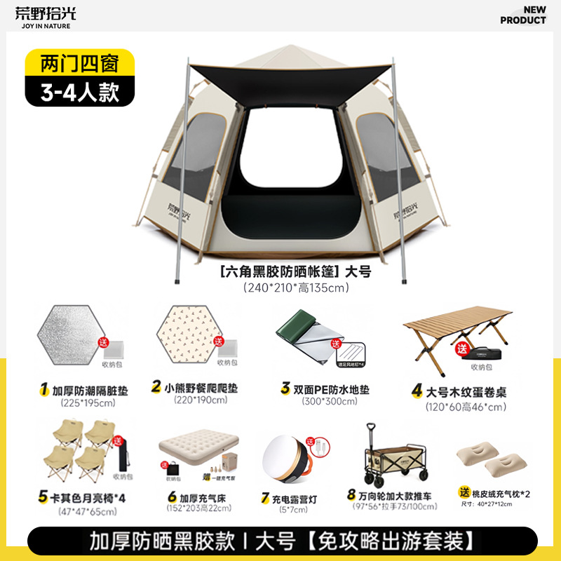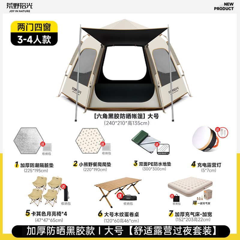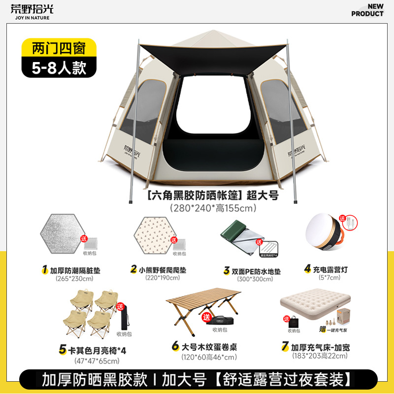 • 5-8인 살구 쌀 흰색 [은색 접착제] 텐트 + 공기 침대 세트