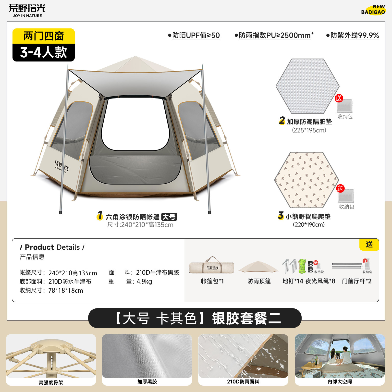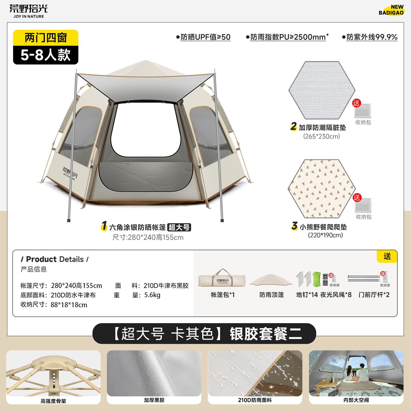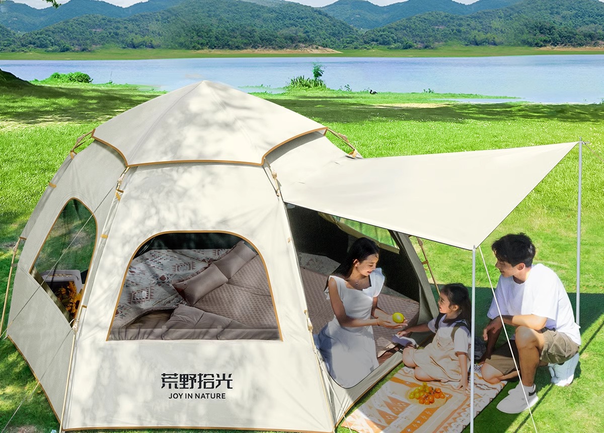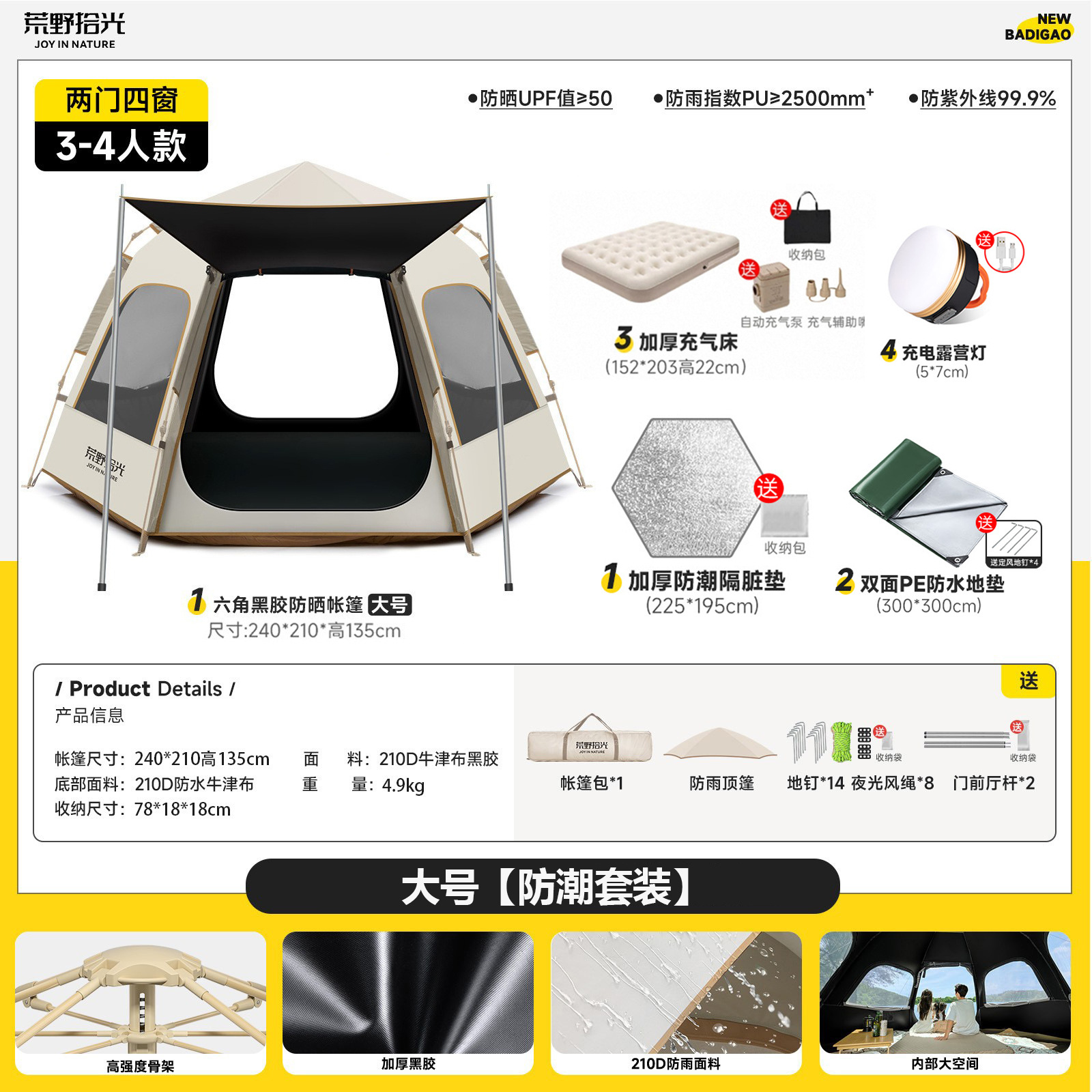 • 5-8인 살구 쌀 흰색 [은색 접착제] 텐트 + 공기 침대 세트