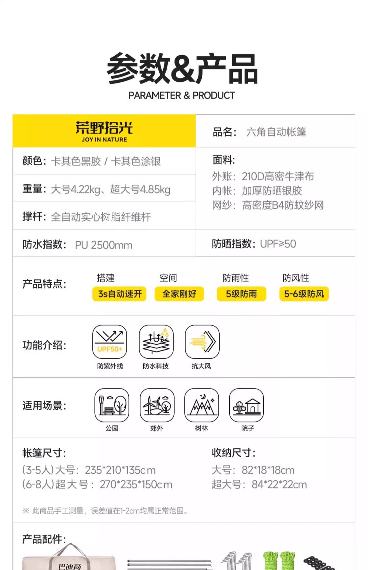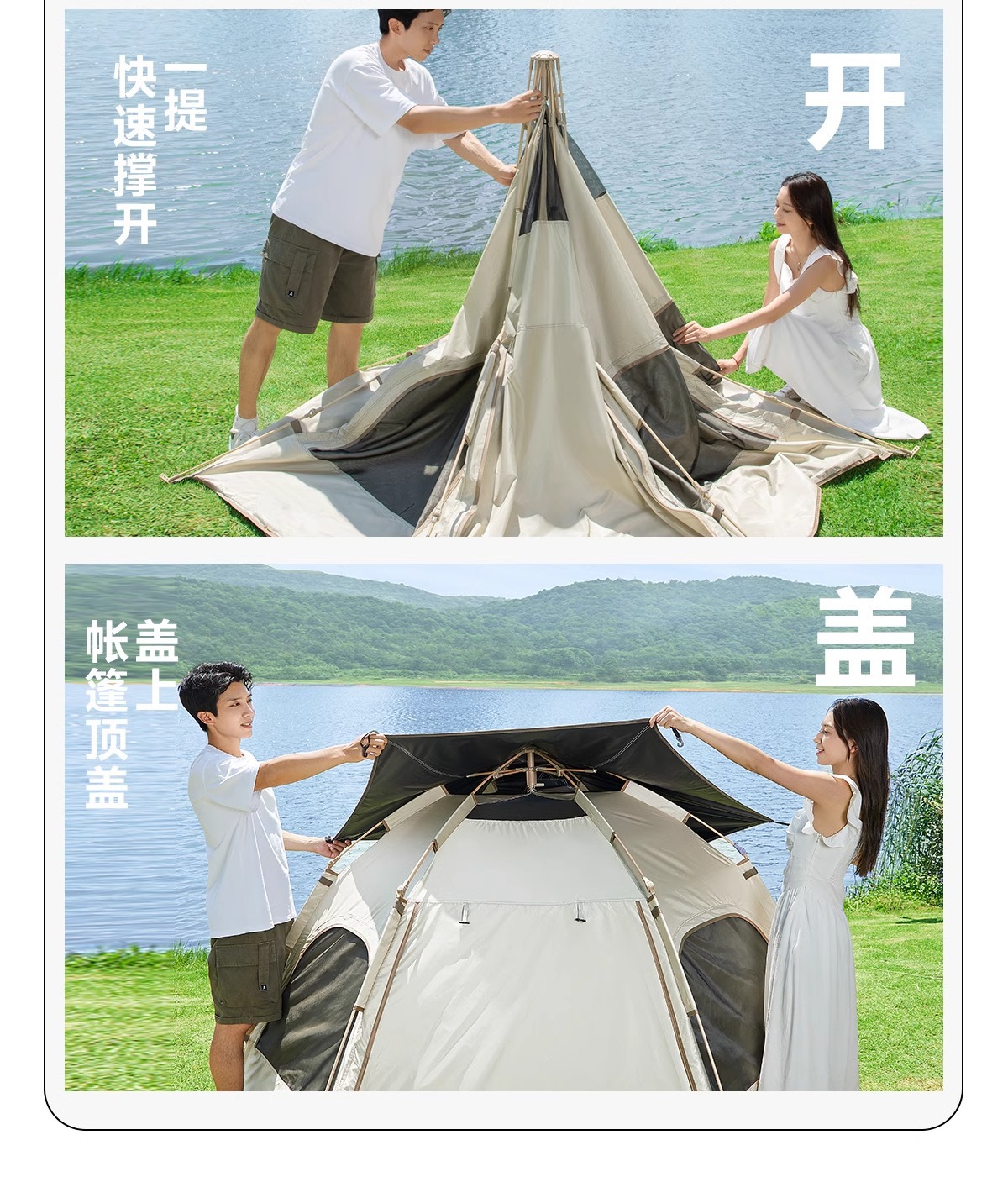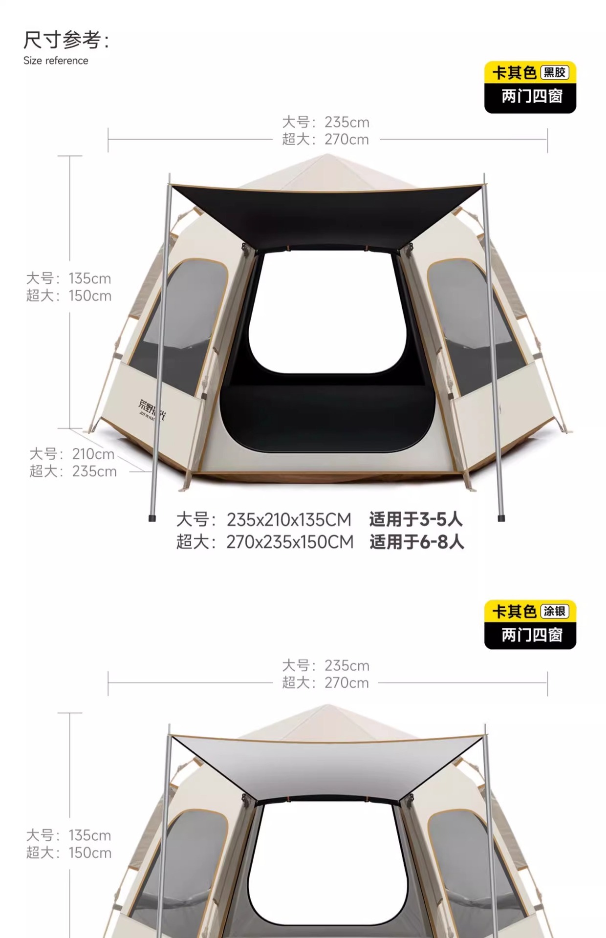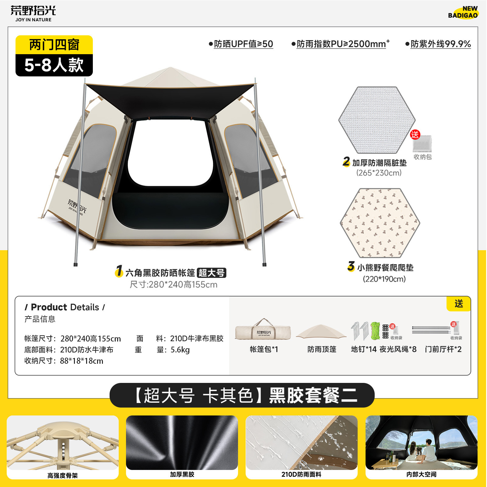 • 5-8인 살구 쌀 흰색 [은색 접착제] 텐트 + 공기 침대 세트